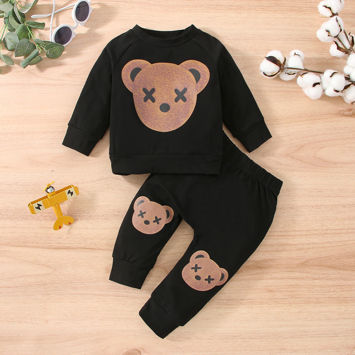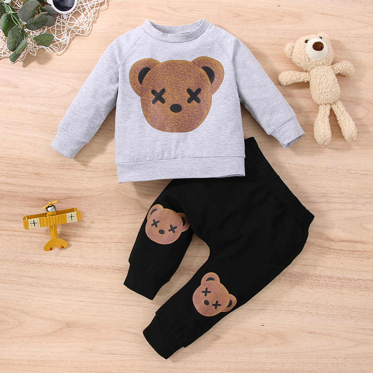 Baby Boy Cute Bear Pattern Long Sleeve Sweatshirt Set Wholesale