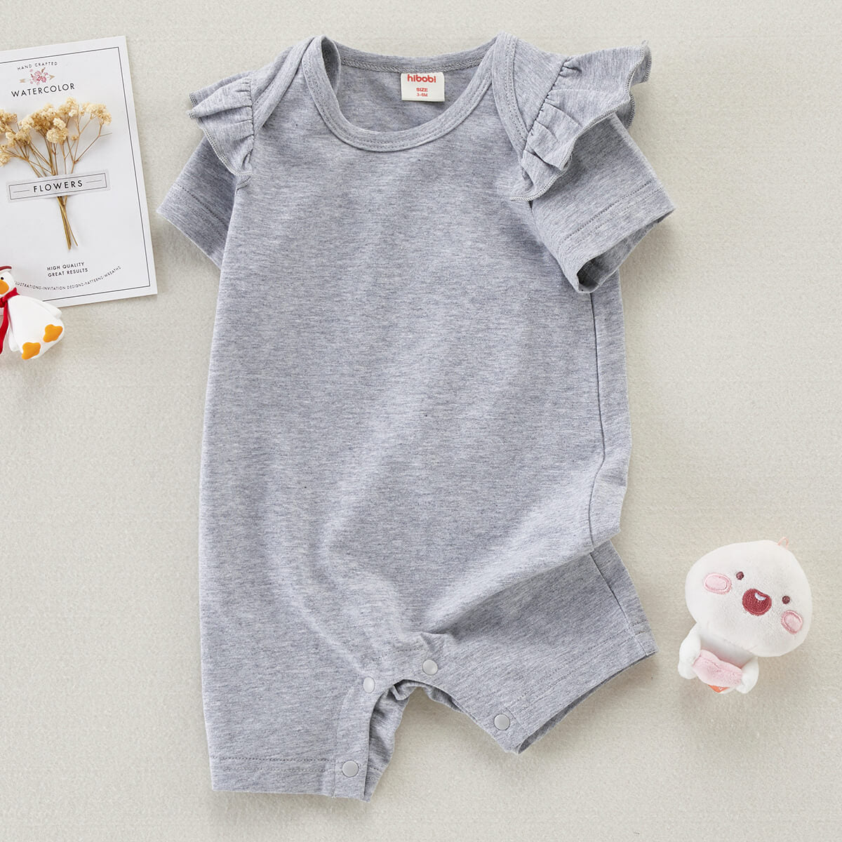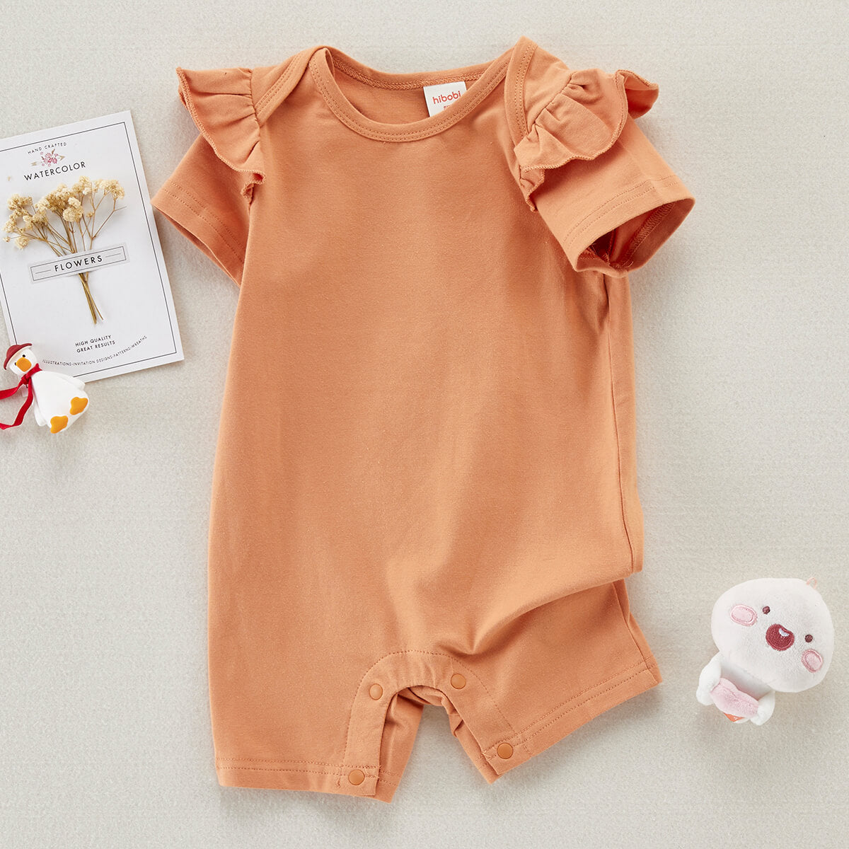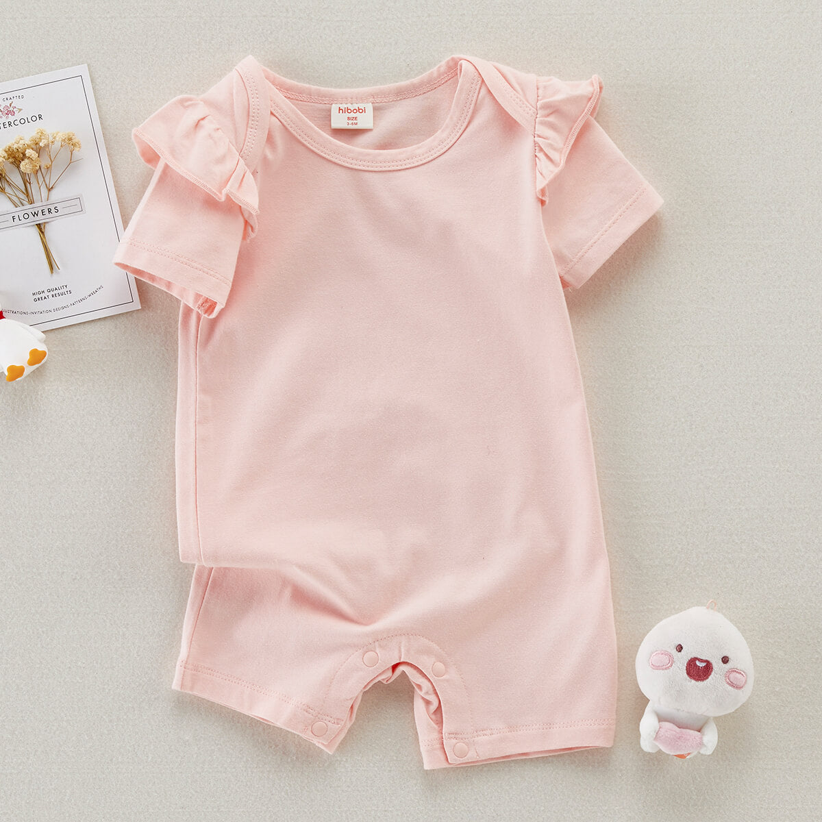hibobi Baby Girl Solid Short Ruffle Sleeve Bodysuit Wholesale