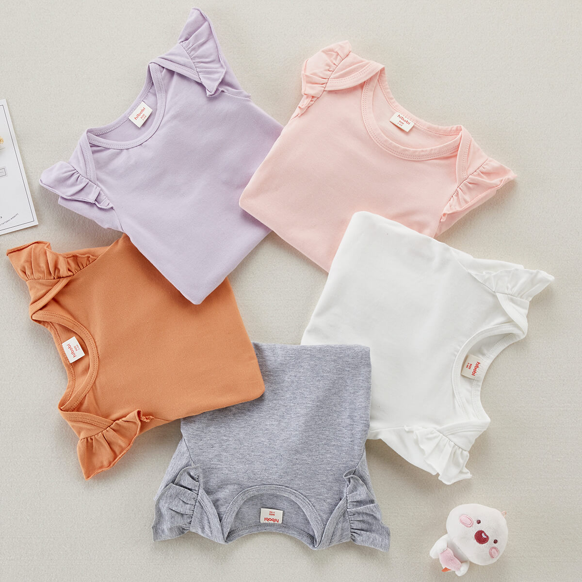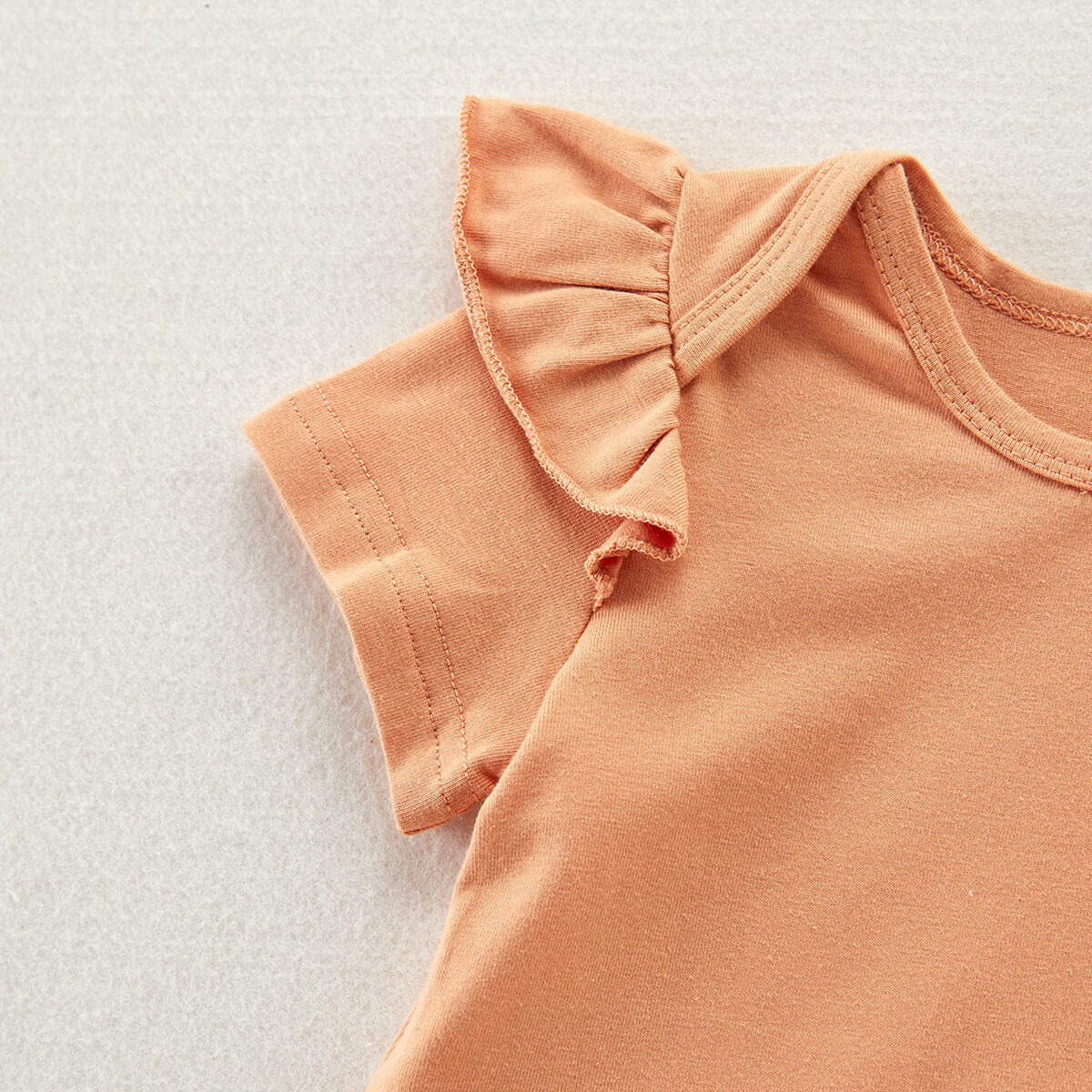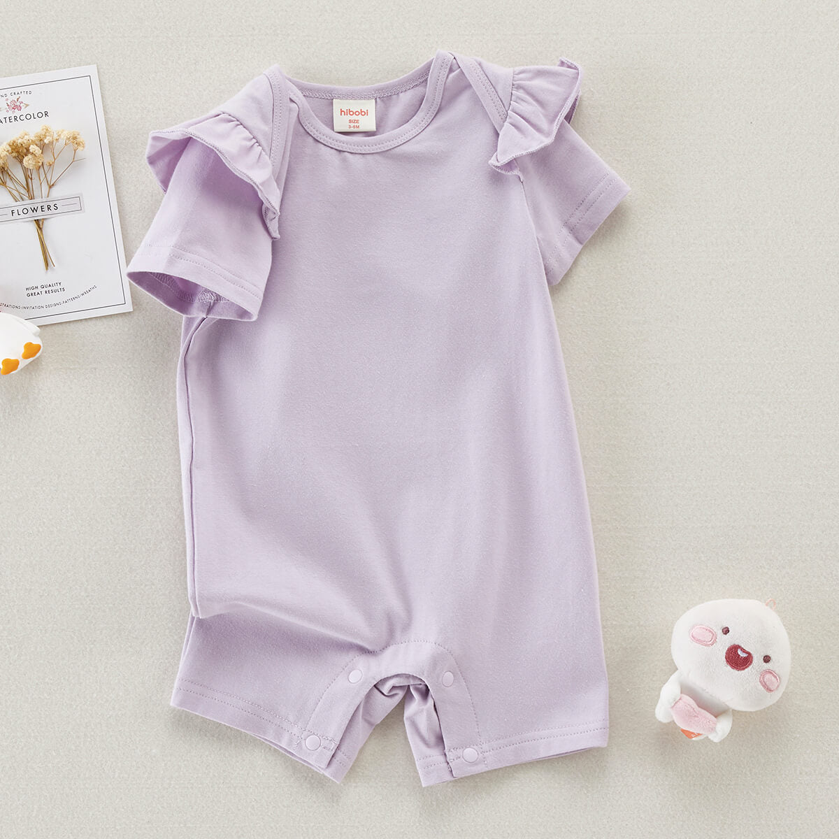 hibobi Baby Girl Solid Short Ruffle Sleeve Bodysuit Wholesale