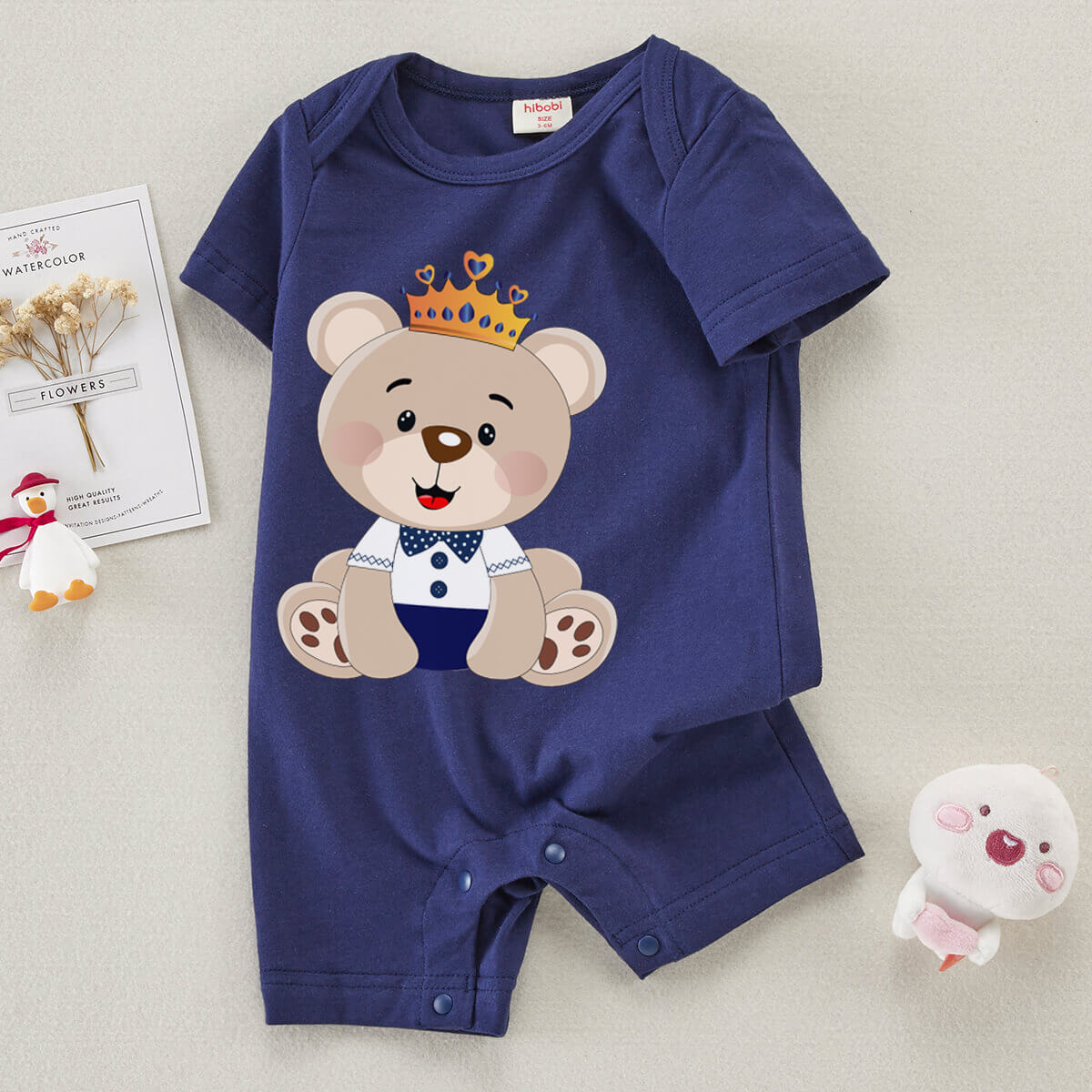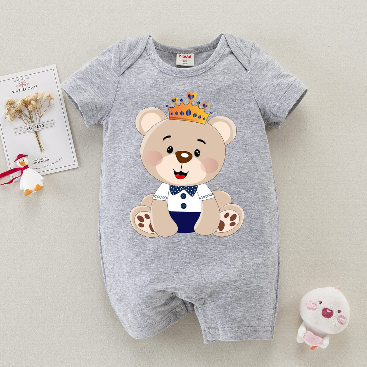 Baby Cute Bear Print Short Sleeve Cotton Bodysuit Wholesale