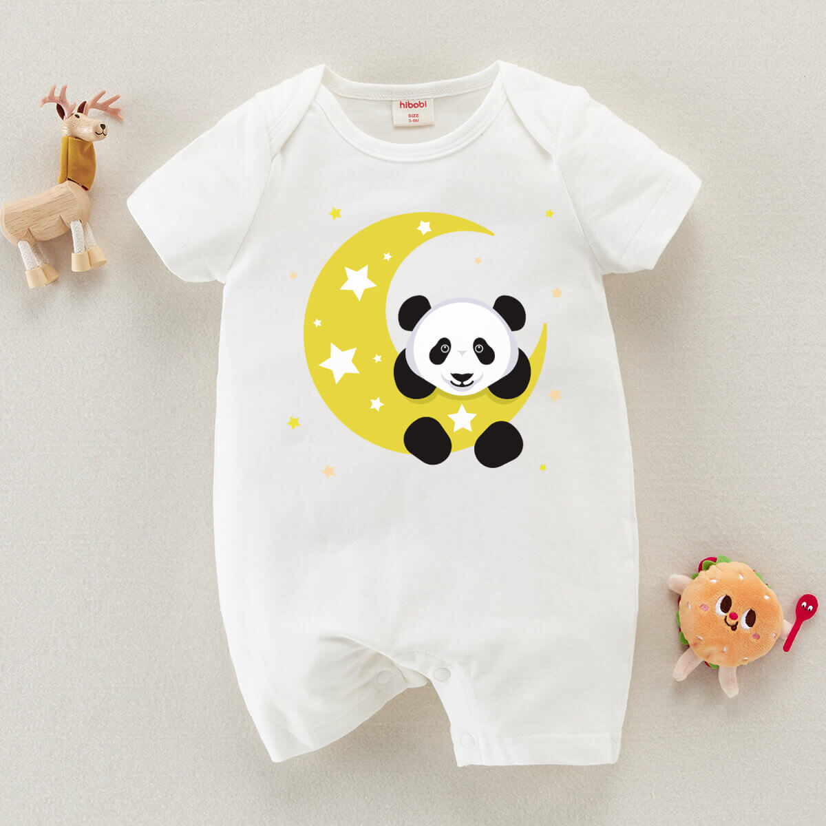 Baby Cute Panda Print Short Sleeve Cotton Bodysuit Wholesale