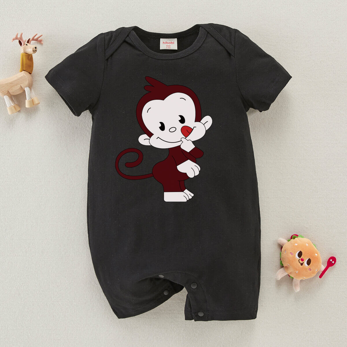 Baby Cute Monkey Print Short Sleeve Cotton Bodysuit Wholesale