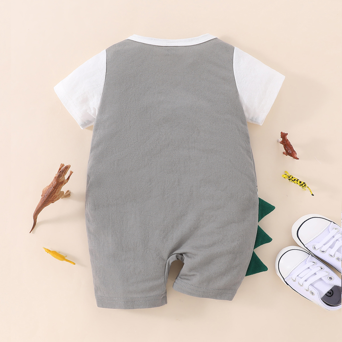 Baby Boy Color-block Applique Dinosaur Crocodile Pattern Pocket Romper Wholesale