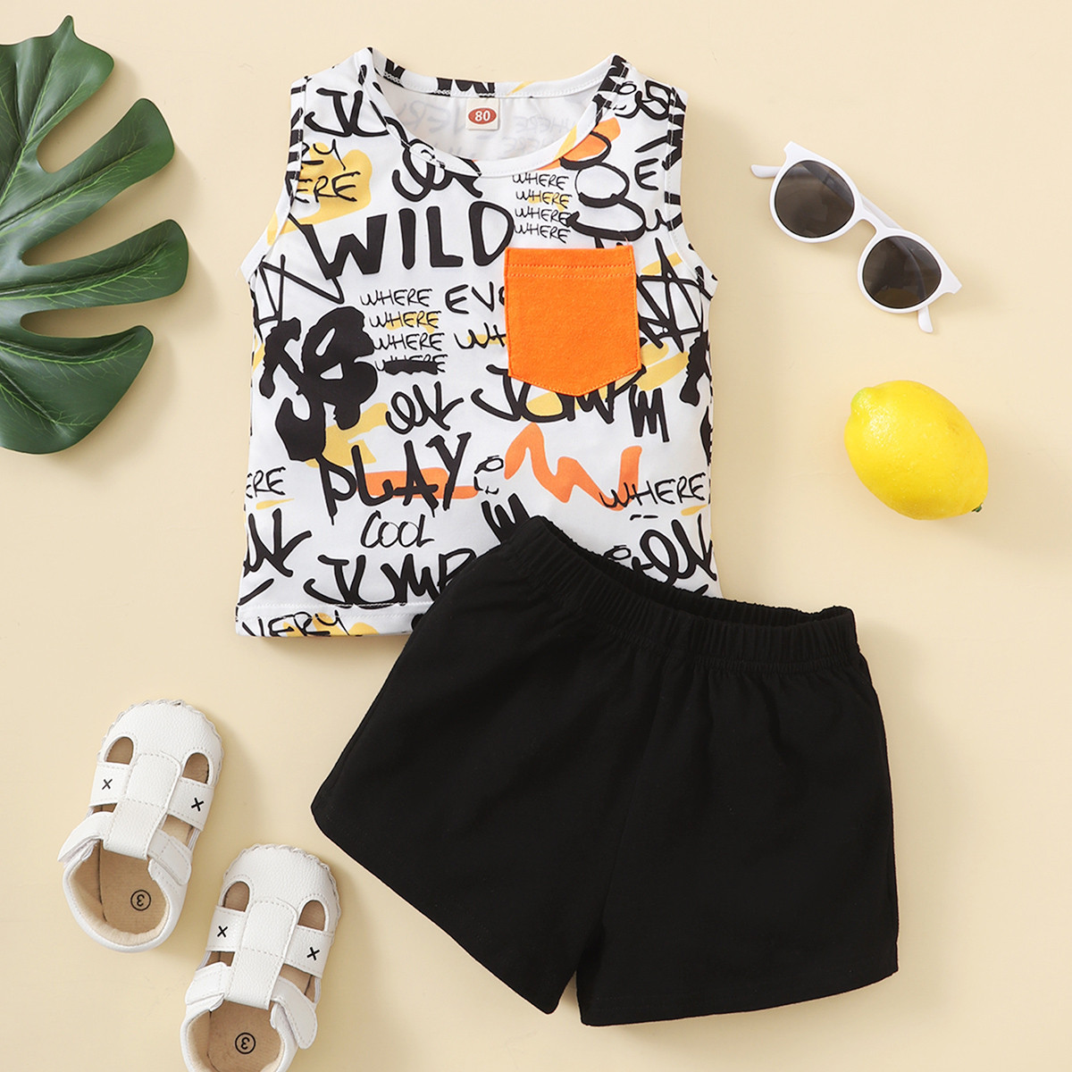Baby Boy Letter Pattern Pocket Decor Sleeveless T-Shirt & Shorts Wholesale
