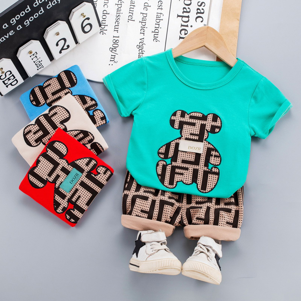 Baby Boy Short-sleeve Bear Print Top And Letter Print Shorts Wholesale