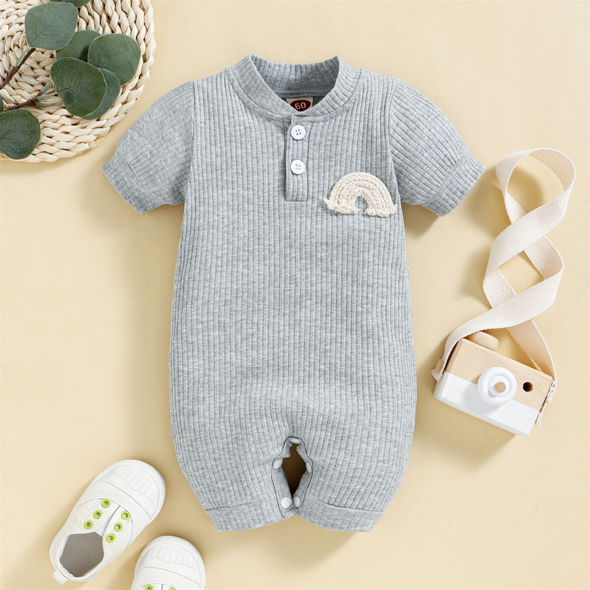 Baby Boy Solid Color Front Button Romper Wholesale