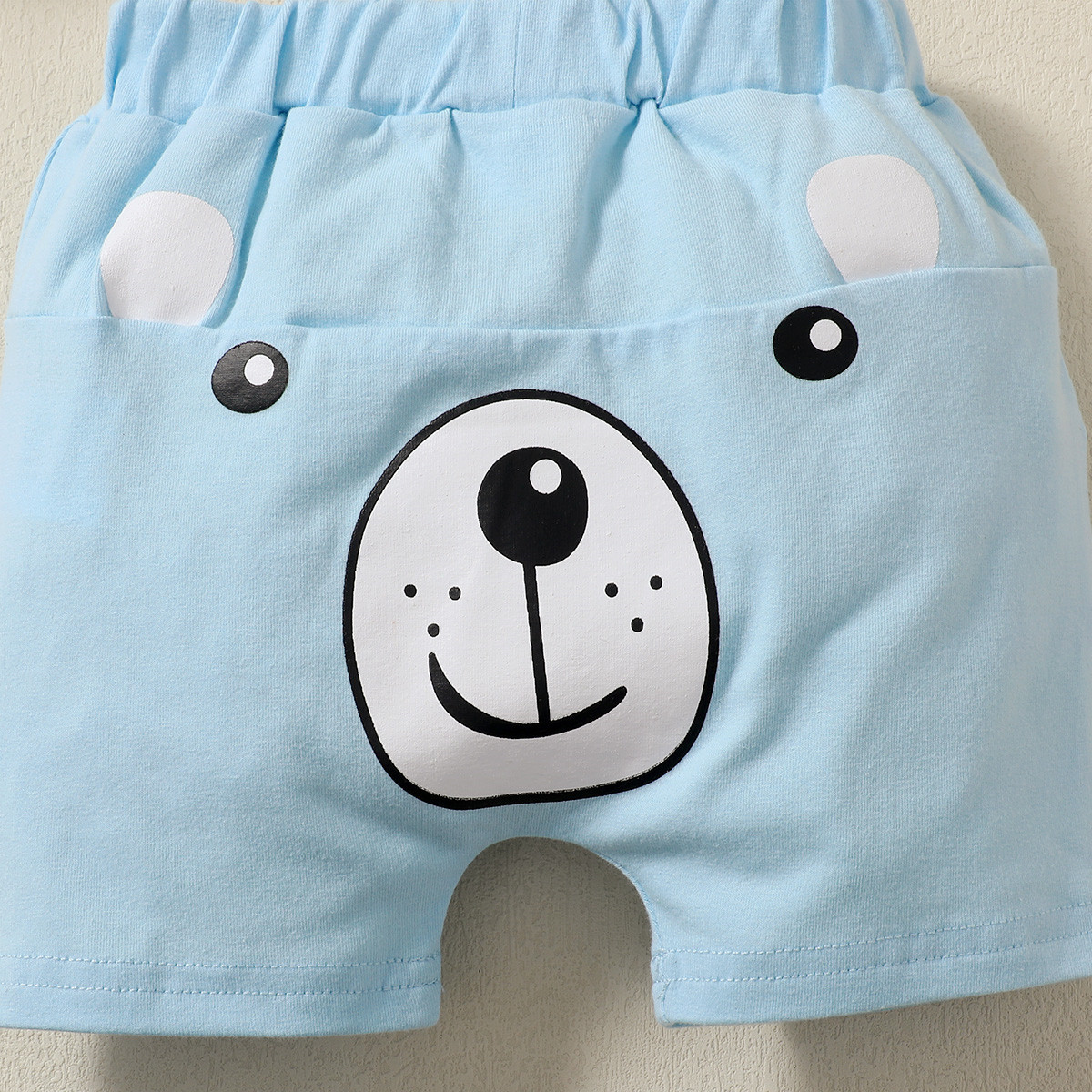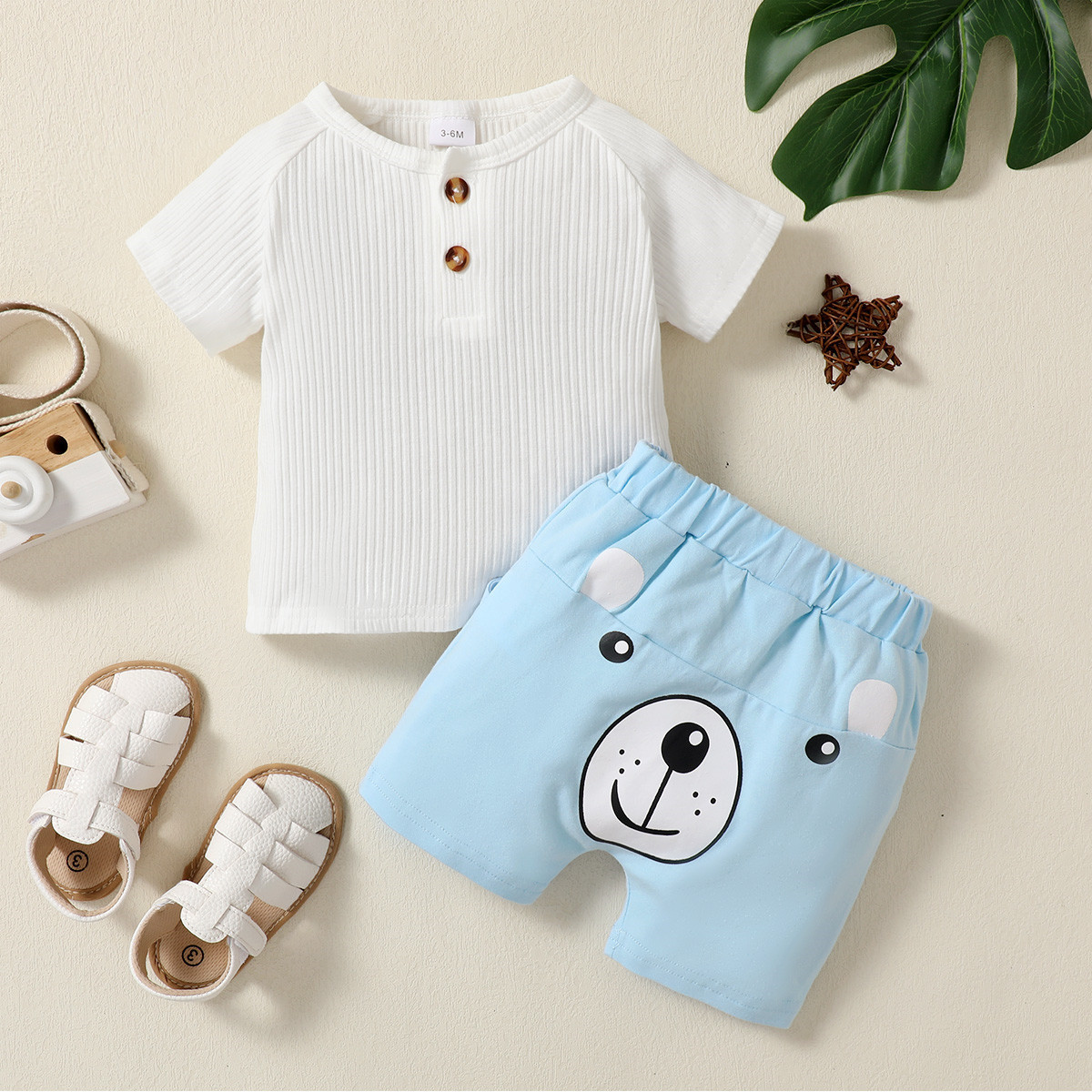Baby Boy Solid Color T-Shirt & Cute Bear Shorts Wholesale
