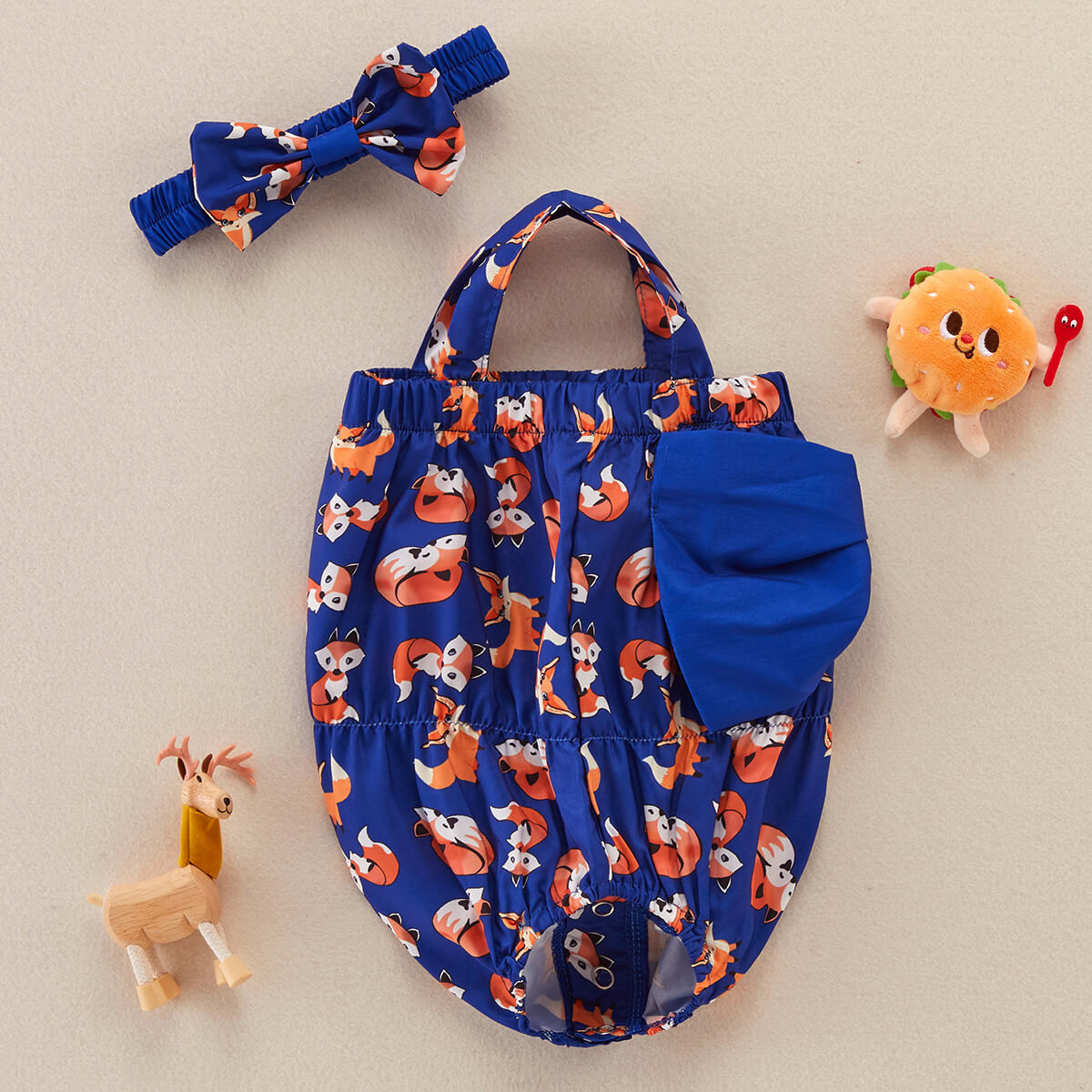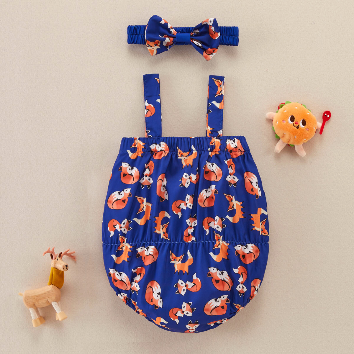 Baby Girl 2 Pieces Animal Fox Pattern Bow-knot Decor Bodysuit & Headband Wholesale