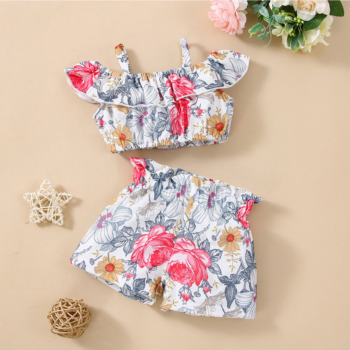 Baby Girl 2 Pieces Floral Pattern Top & Shorts Wholesale