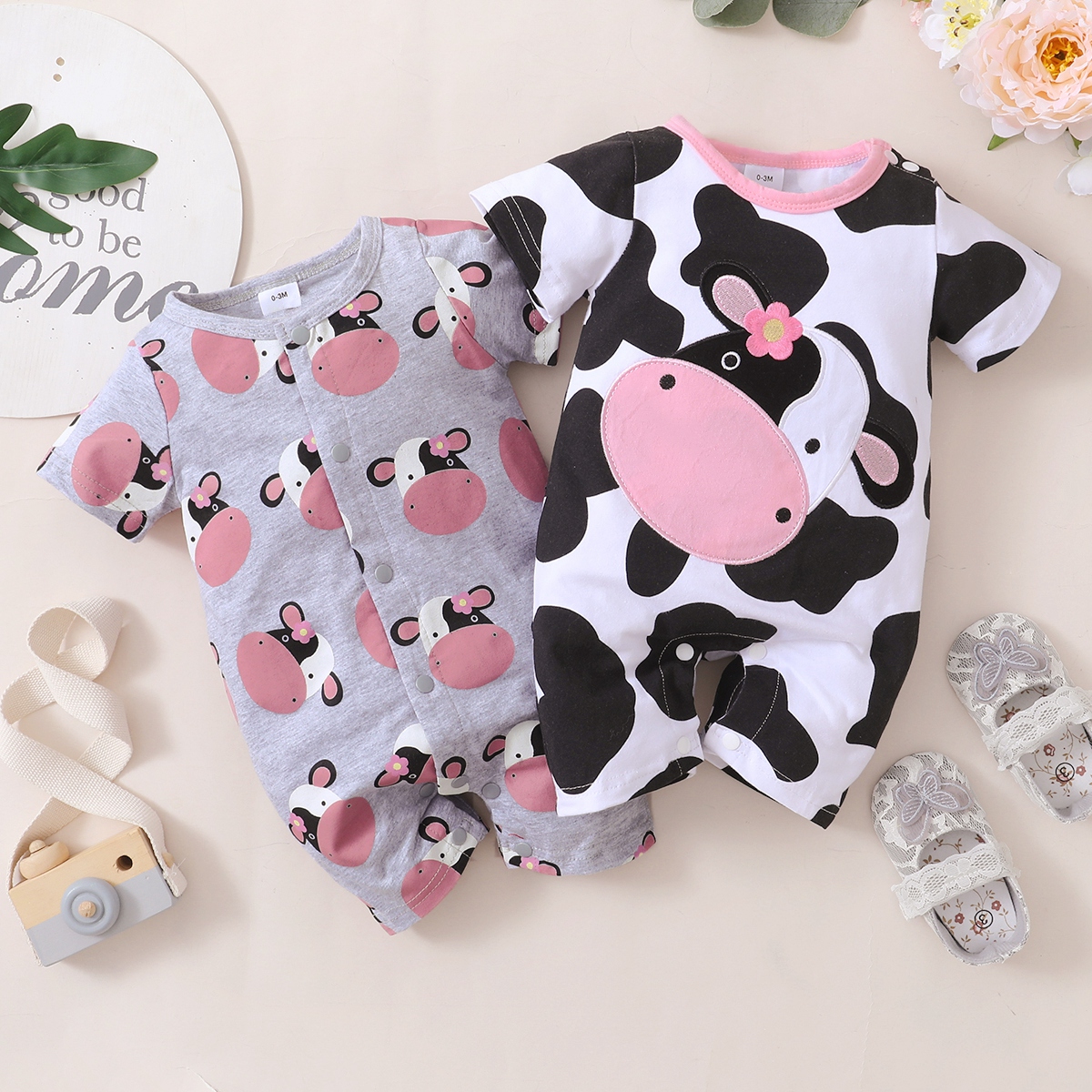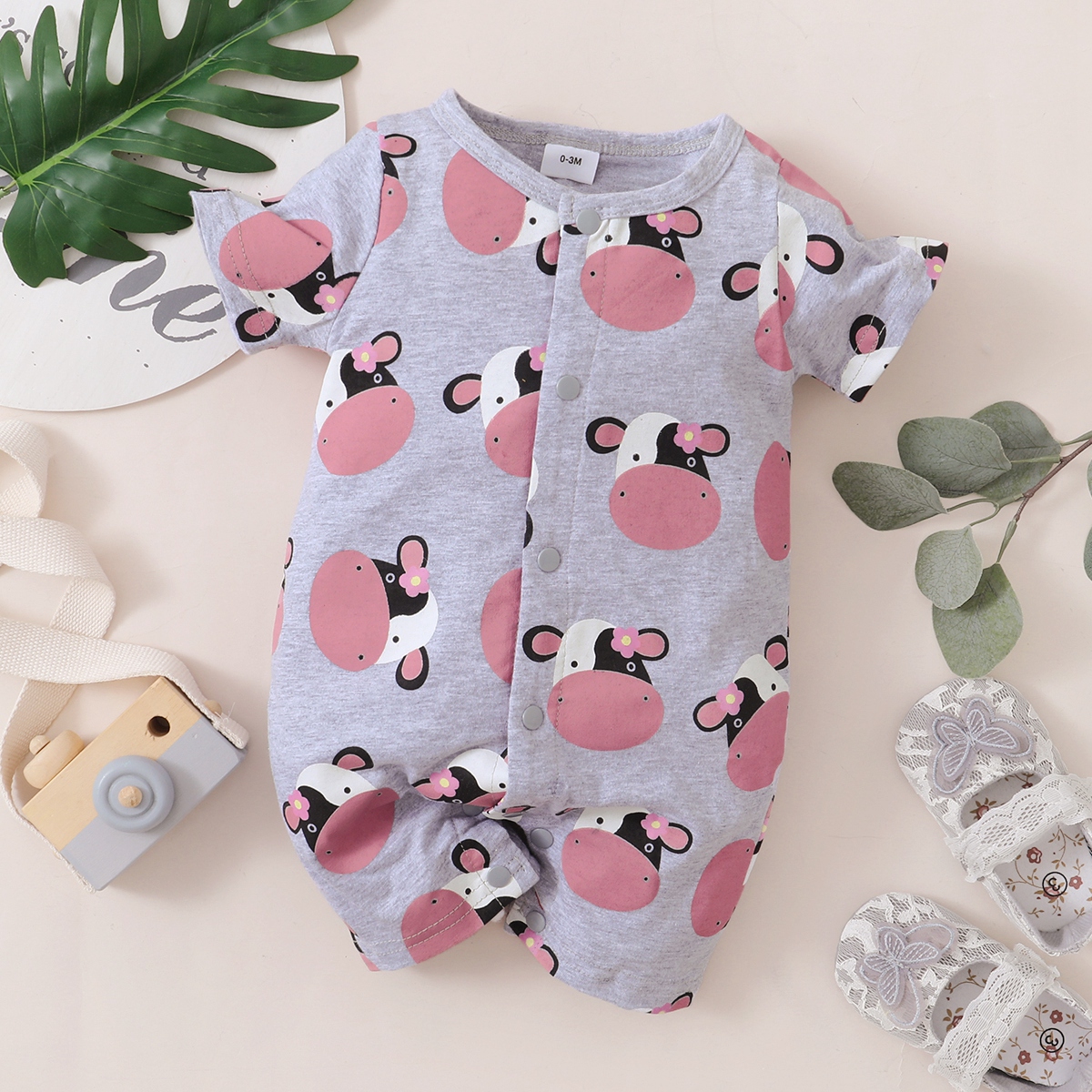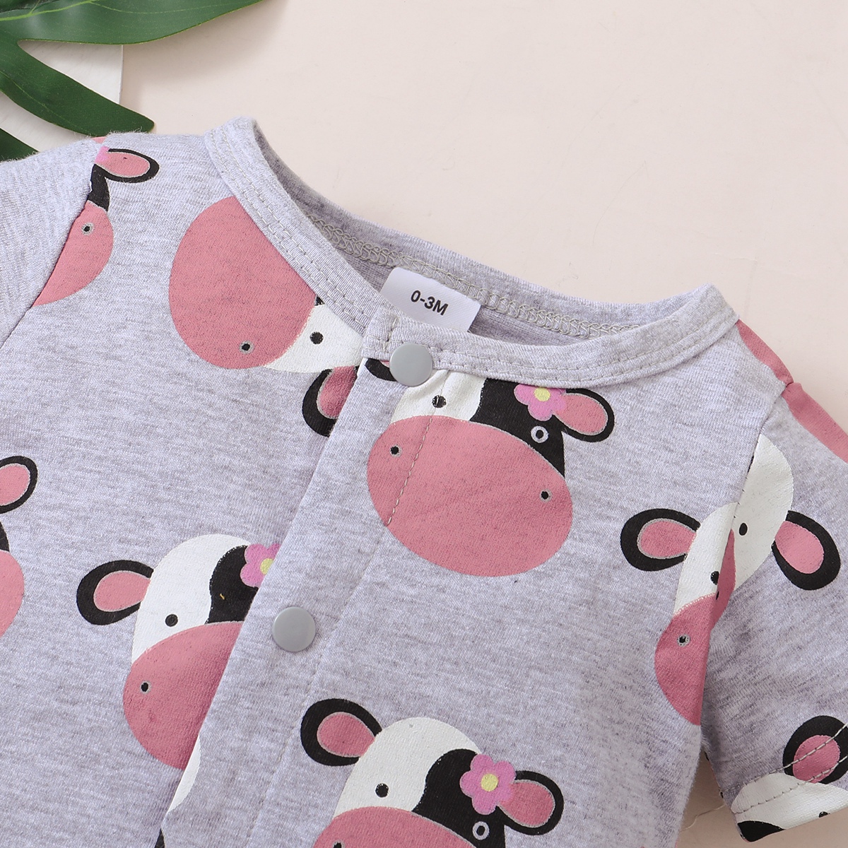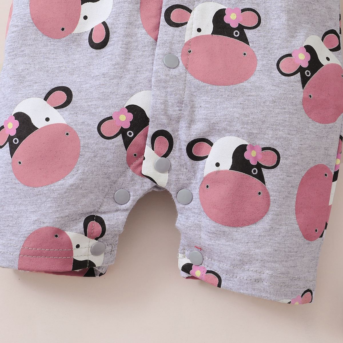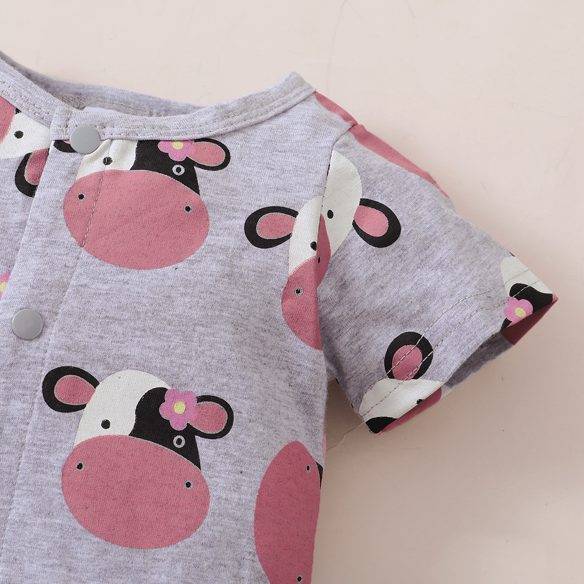 Baby Girl Cute Cattle Print Front button Short Sleeve Bodysuit Wholesale