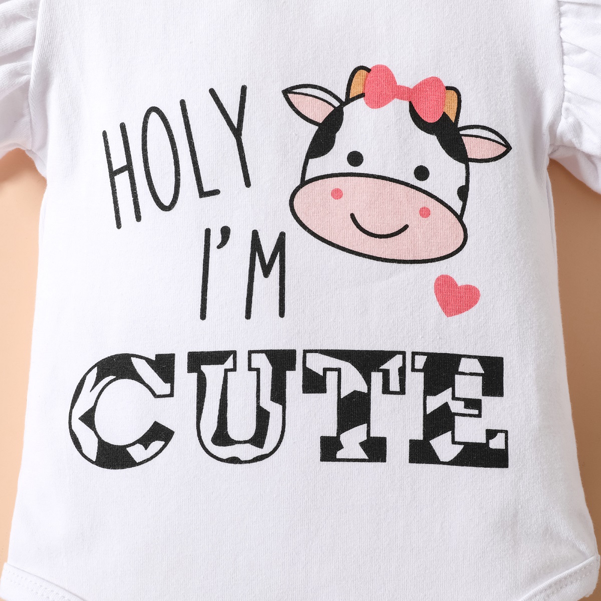 Baby Girl Eid al-Adha Milk Cow Pattern Bodysuit & Shorts & Headband Wholesale