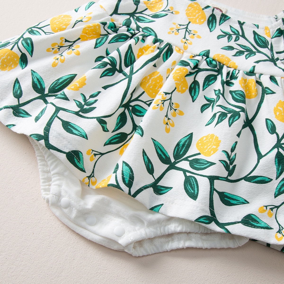 Baby Girl Floral Color-block Ruffle-sleeves Bodysuit & Sun Hat Wholesale