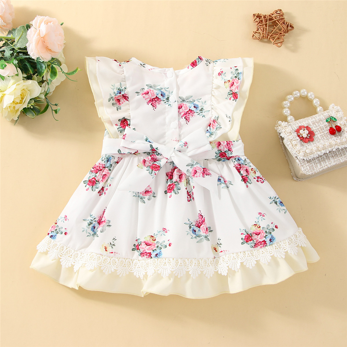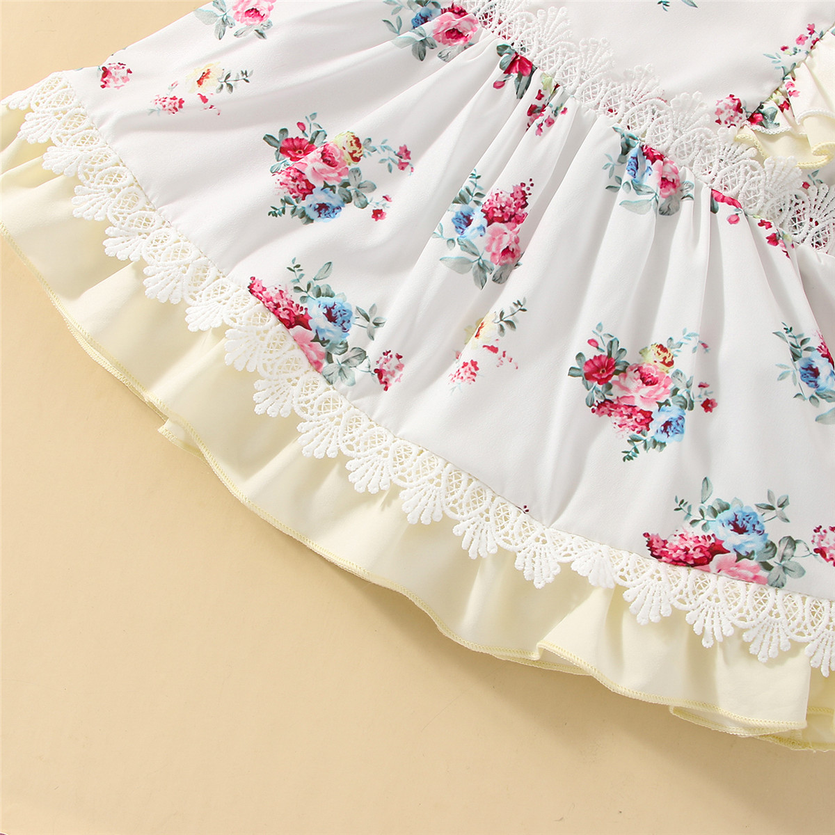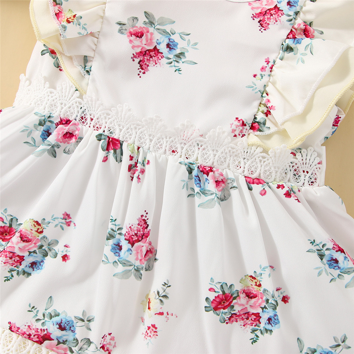 Baby Girl Floral Pattern Lace Decoration Ruffle-sleeve Dress Wholesale