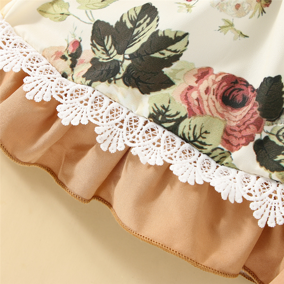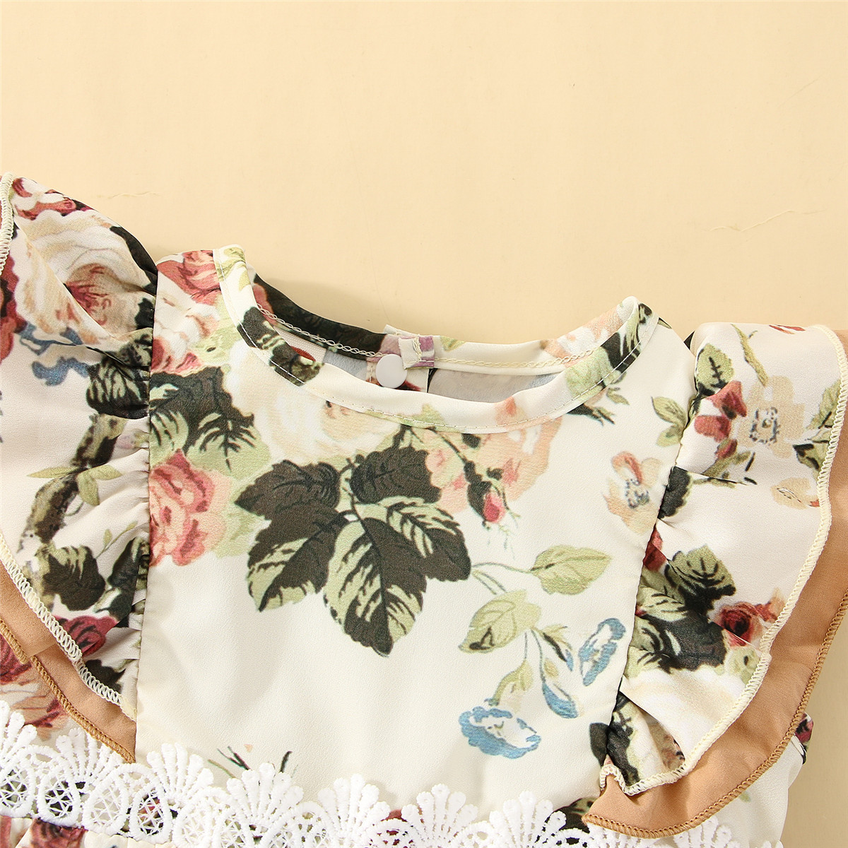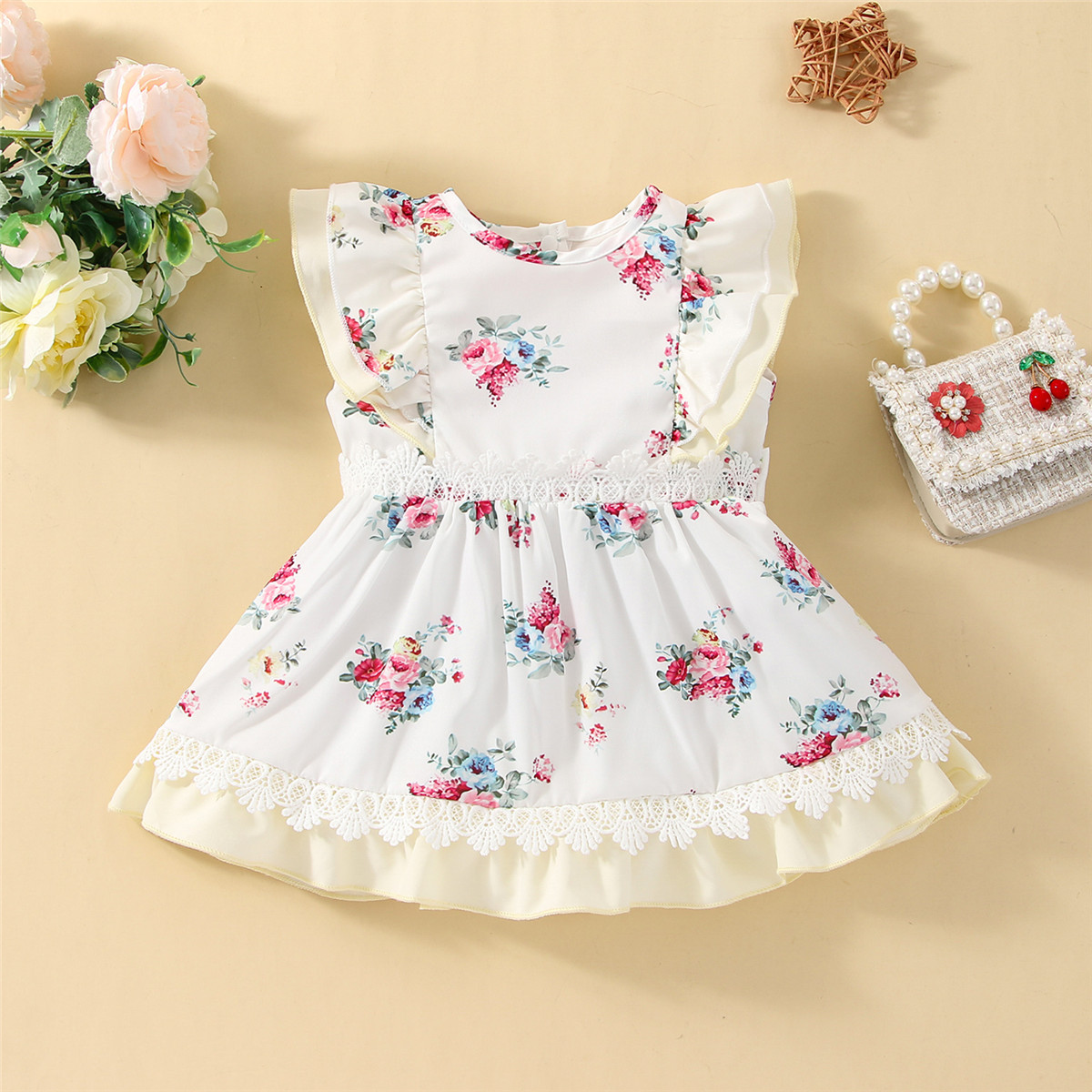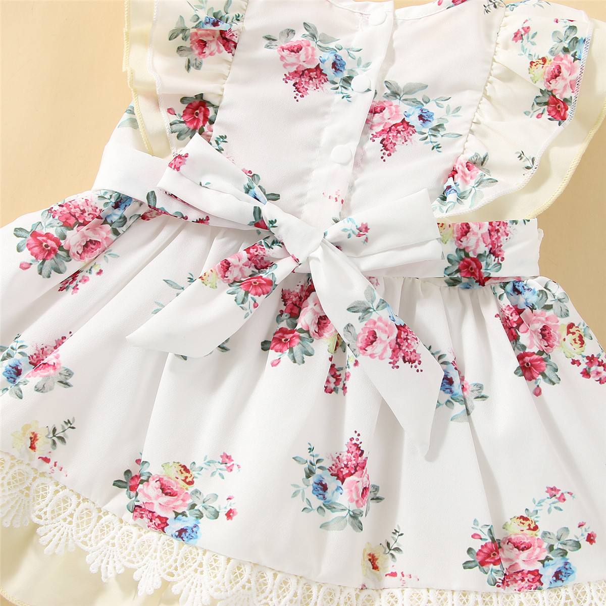 Baby Girl Floral Pattern Lace Decoration Ruffle-sleeve Dress Wholesale