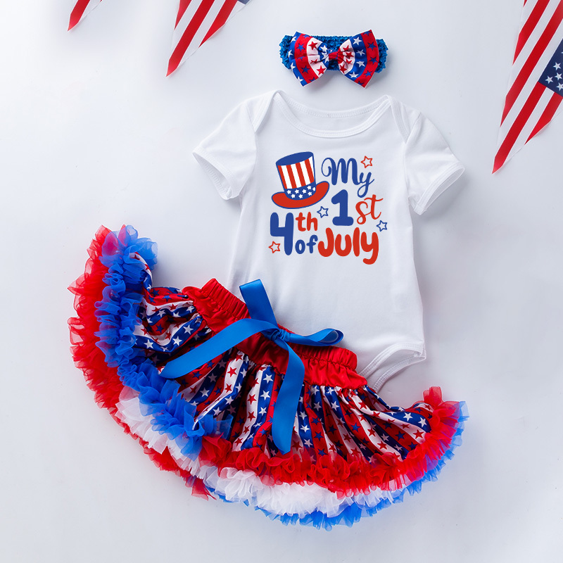 Baby Girl Independence Day Letter Print Bodysuit & Mesh Tutu Skirt & Headband Wholesale