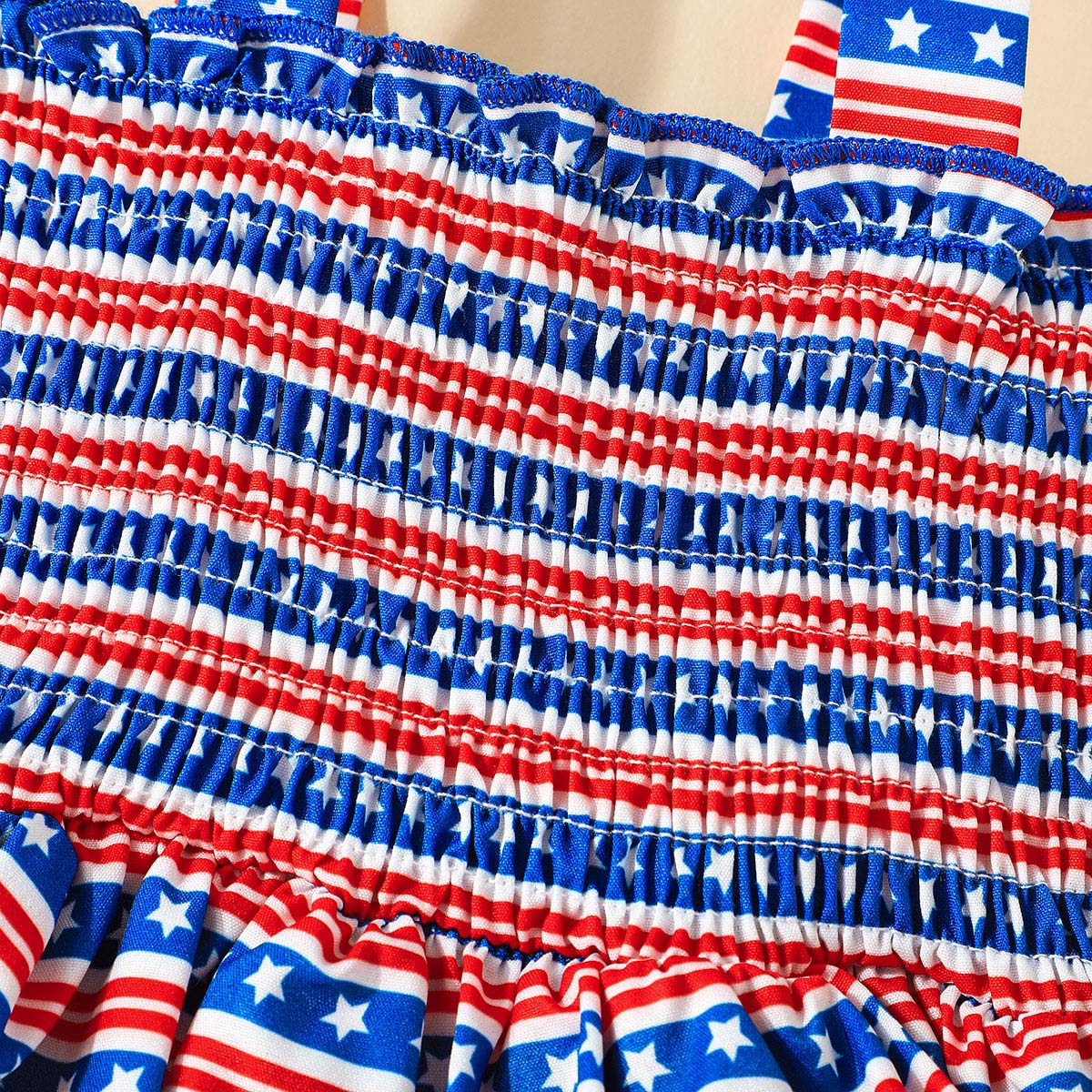 Baby Girl Independence Day Sling Smocking Bodysuit with Headband Wholesale