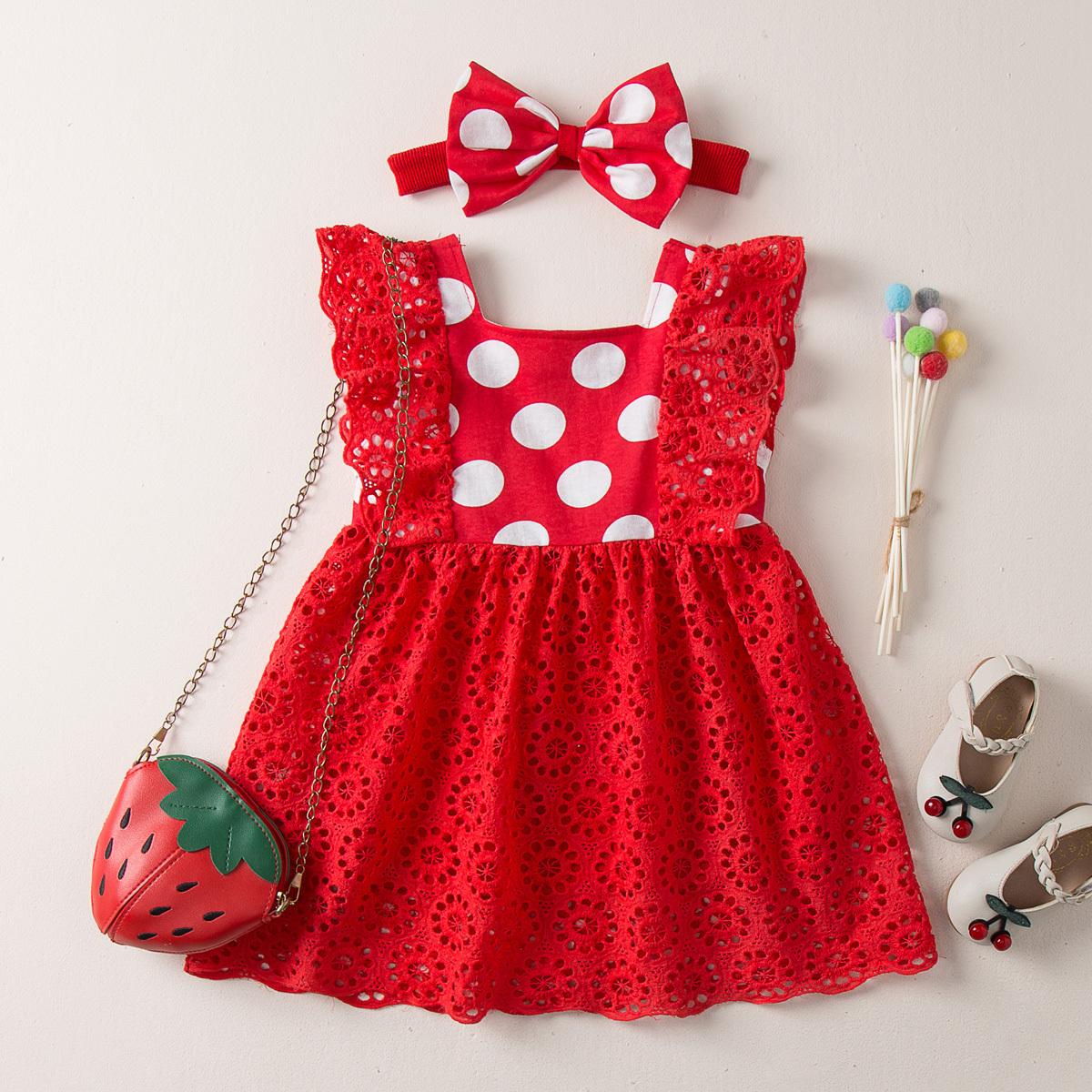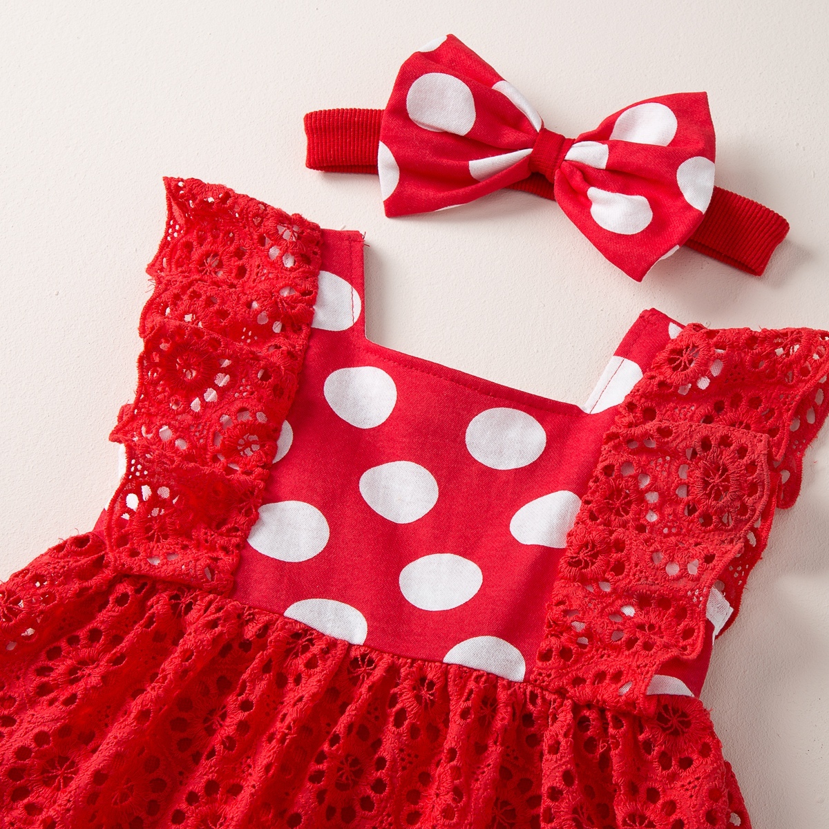 Baby Girl Polka dot Lace Decor Sleeveless Dress & Headband Wholesale