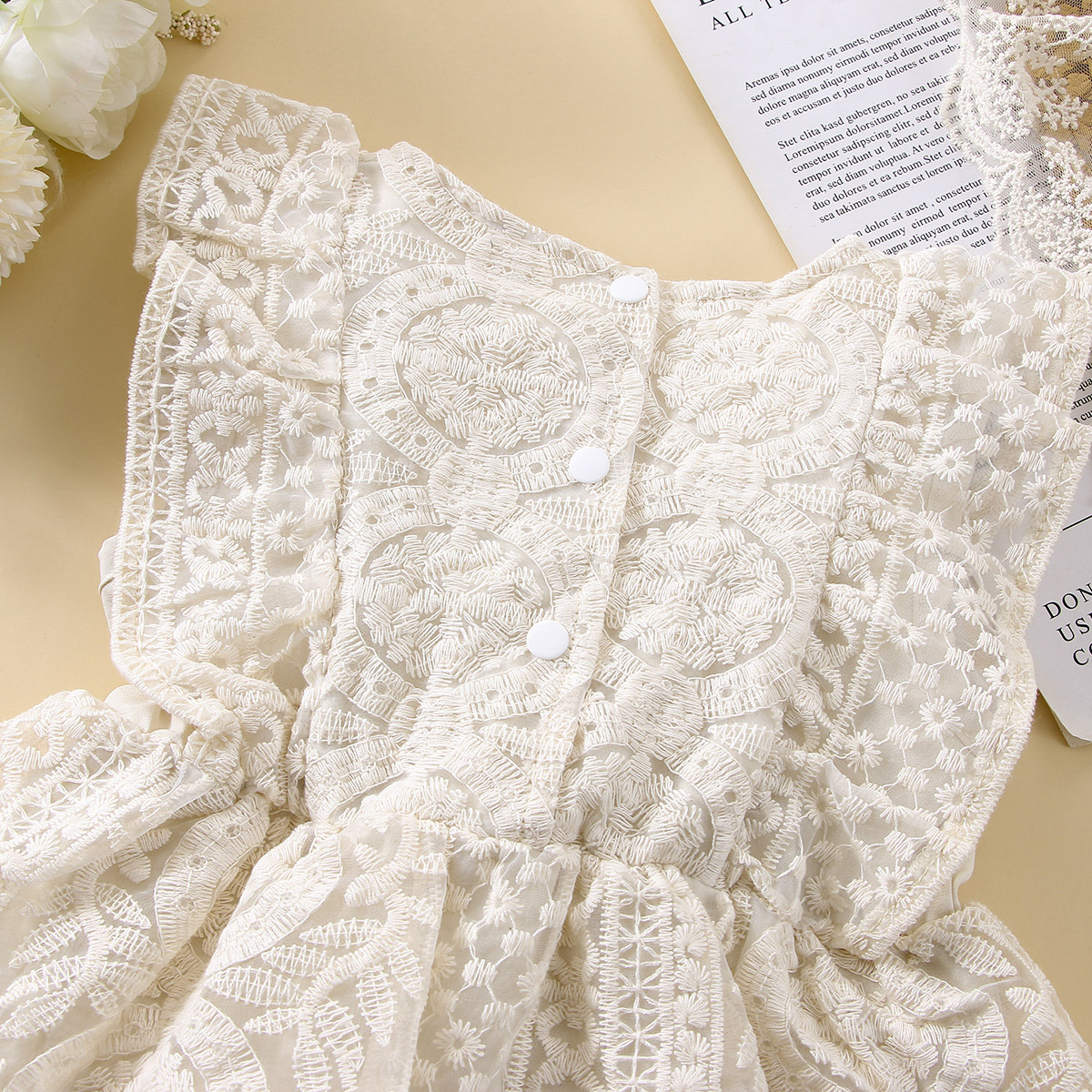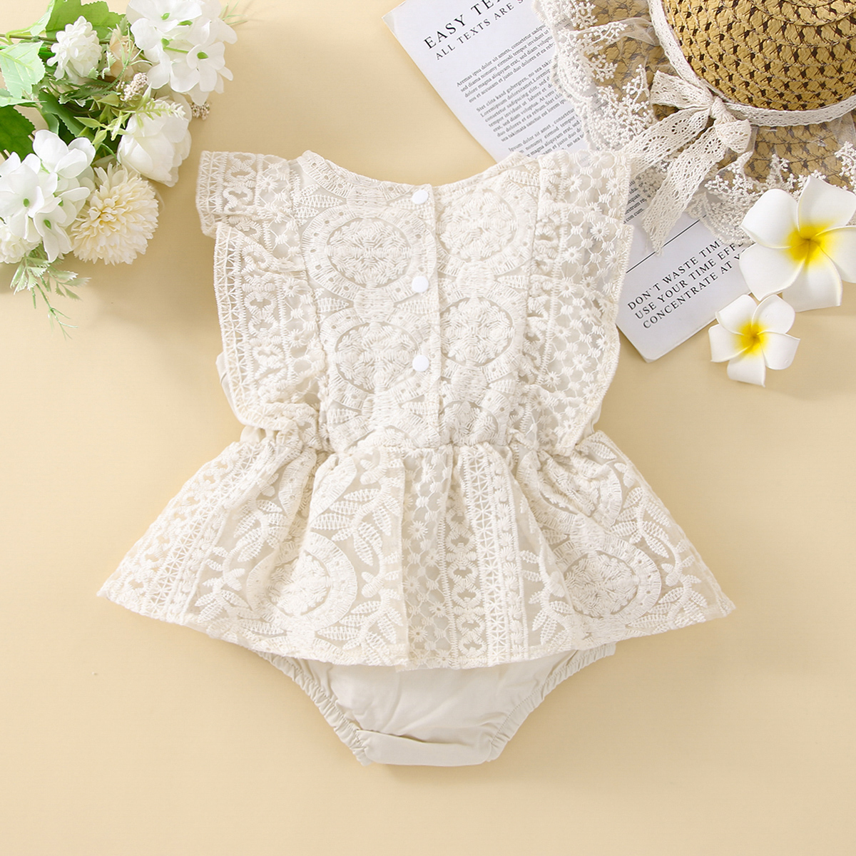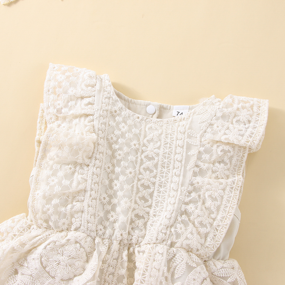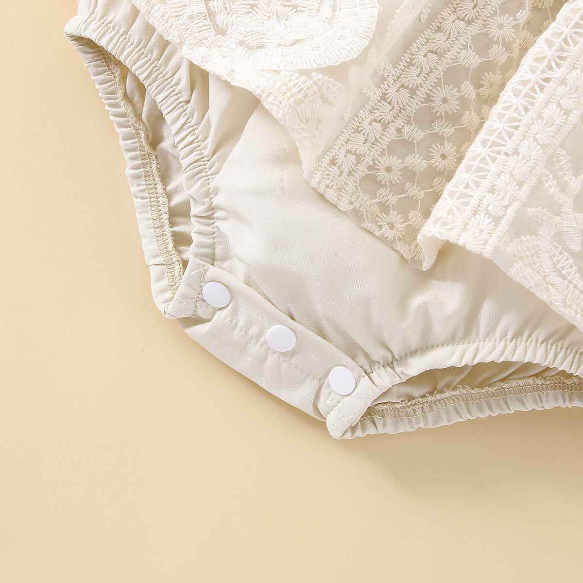 Baby Girl Solid Color Lace Floral Pattern Ruffle-sleeve Bodysuit Wholesale