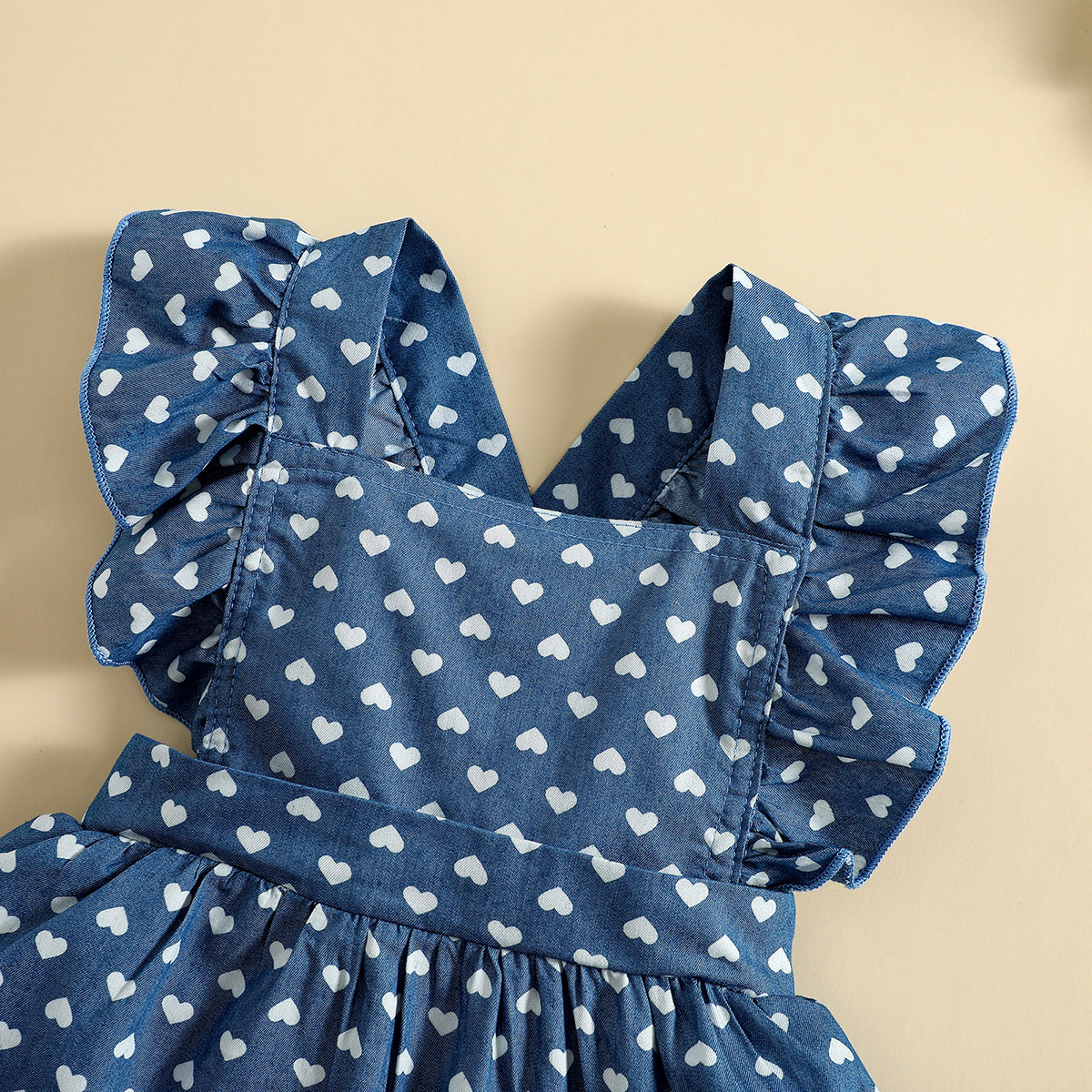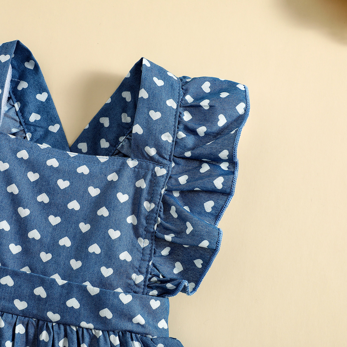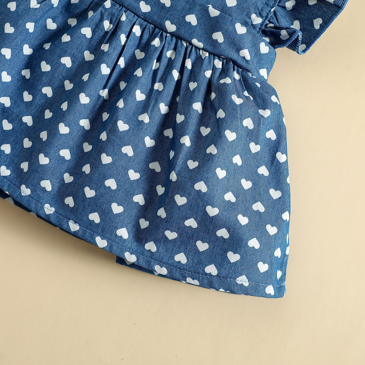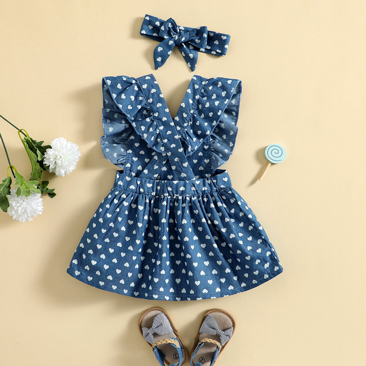 Baby Girl Sweet Heart-shaped Print Ruffle-sleeve Dress with Headband Wholesale
