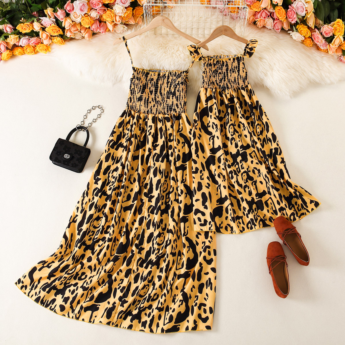 Causal Leopard Print Long Dress for Mom and Me Wholesale