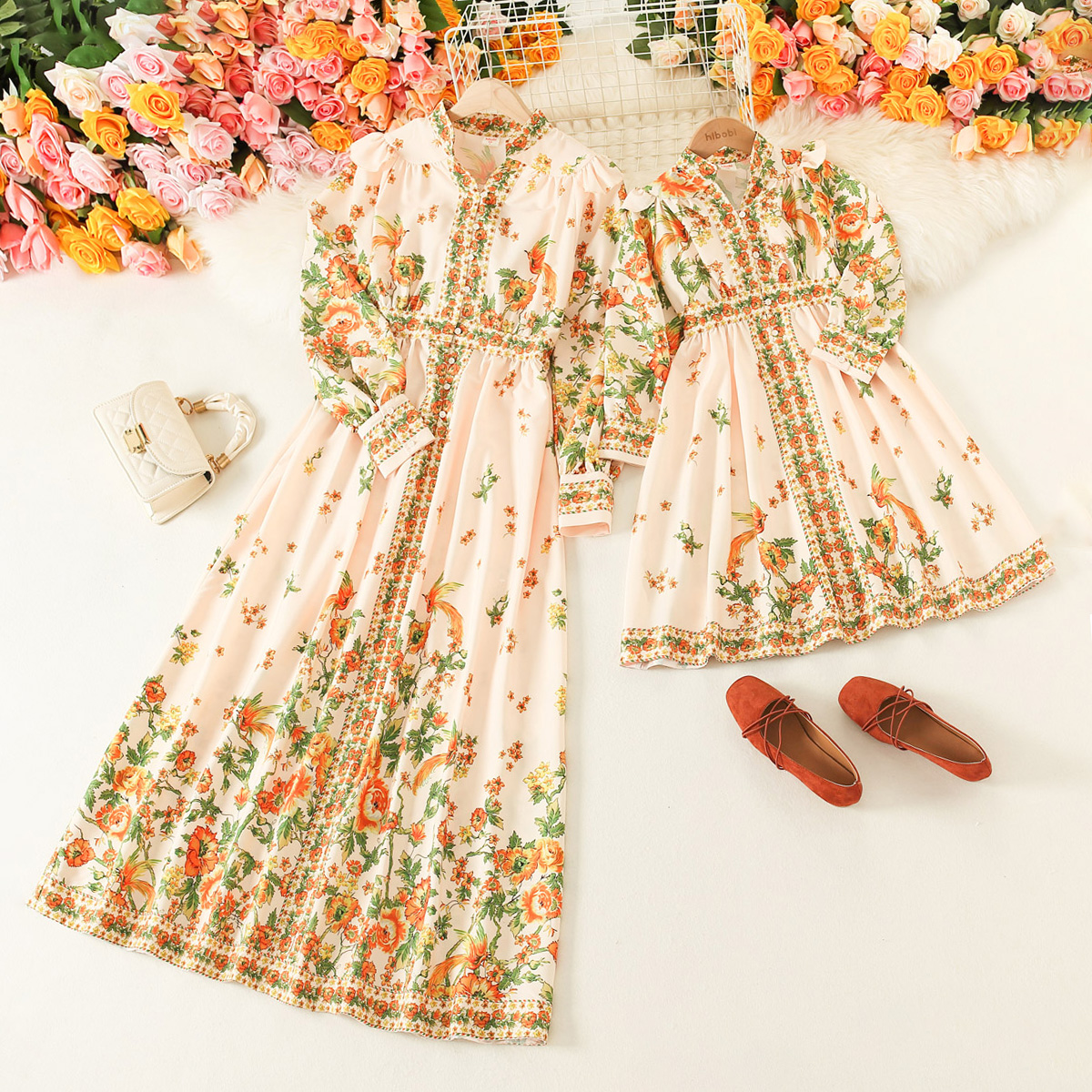 Elegant Floral Print Long Sleeve Dress for Mom and Me Wholesale