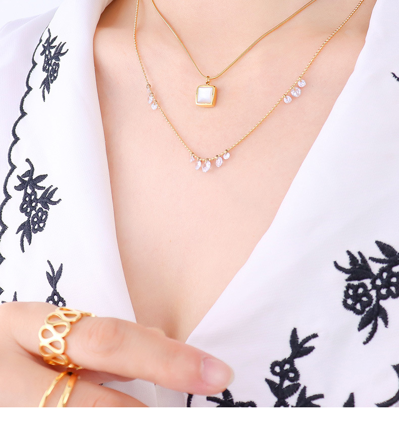 French Seashell & Diamonds Double Layer Necklace Set