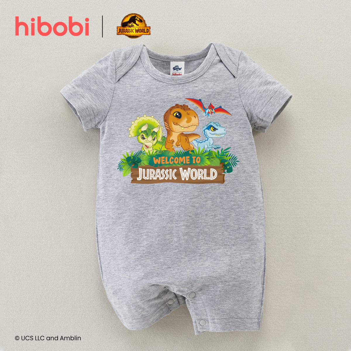 hibobi×Jurassic Baby Boy Cartoon Print Short Sleeve Cotton Jumpsuit Wholesale