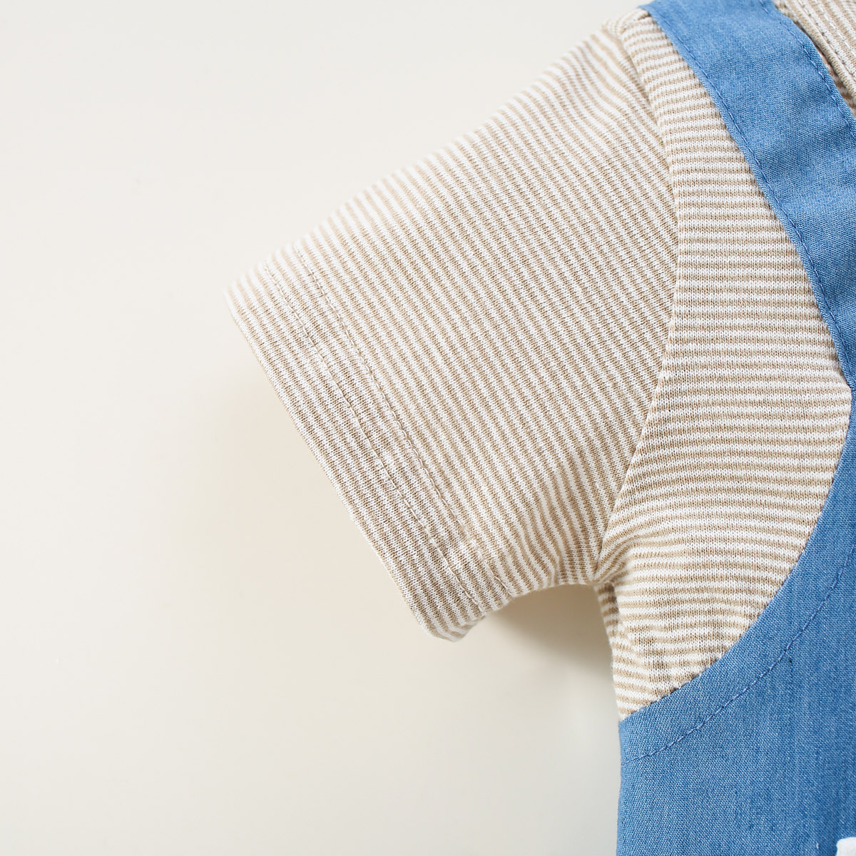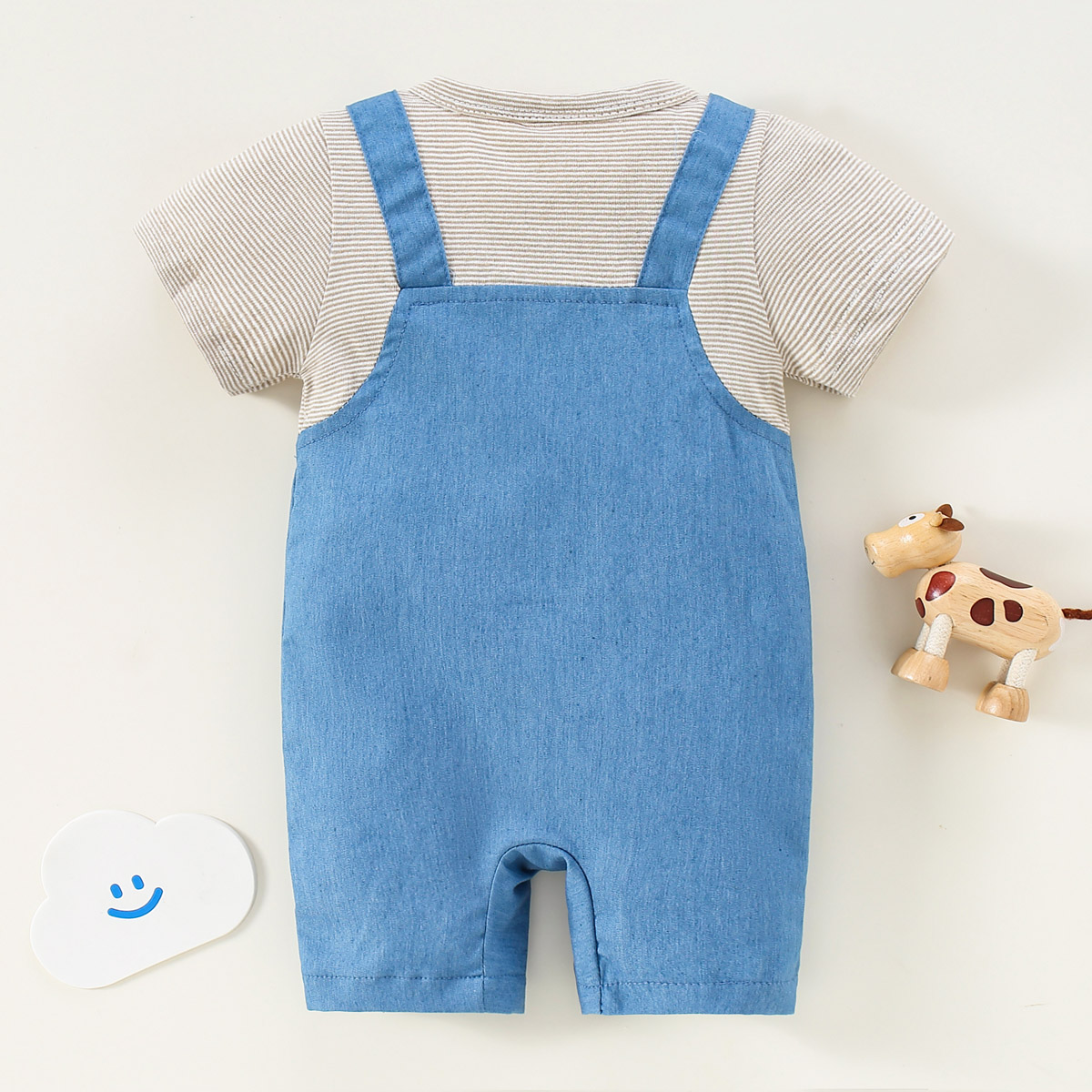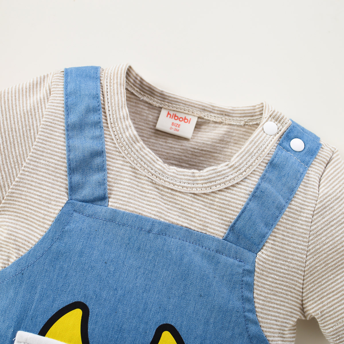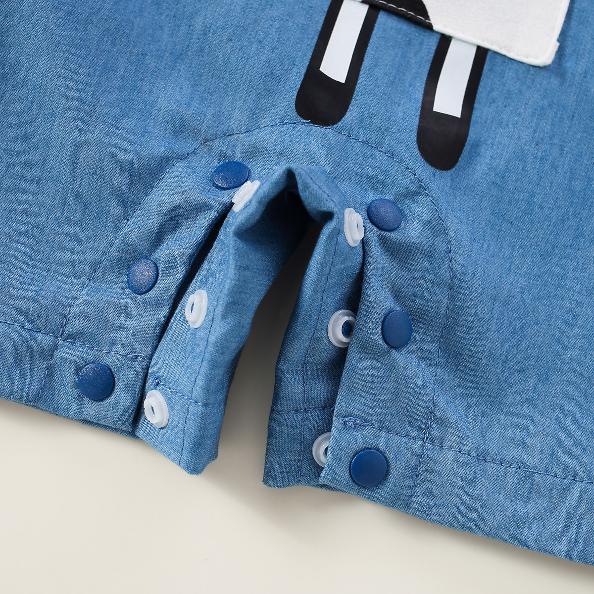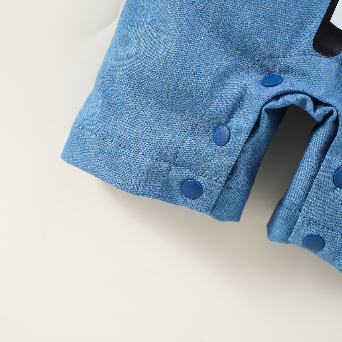 hibobi Boy Baby Cute Animal Print Denim Patchwork Jumpsuit Wholesale