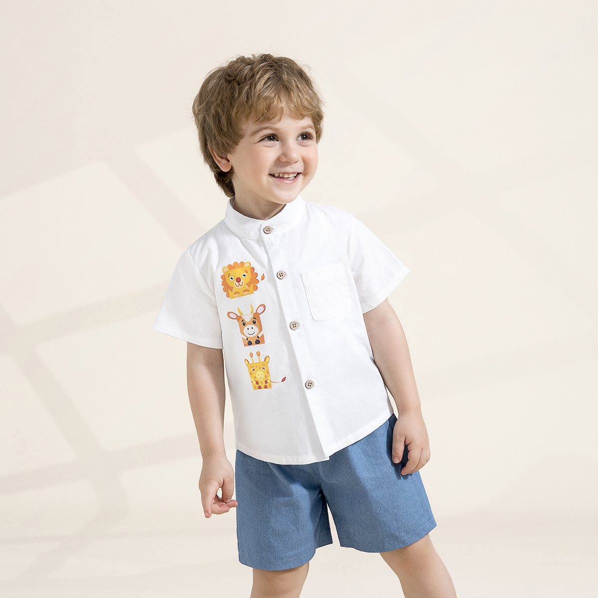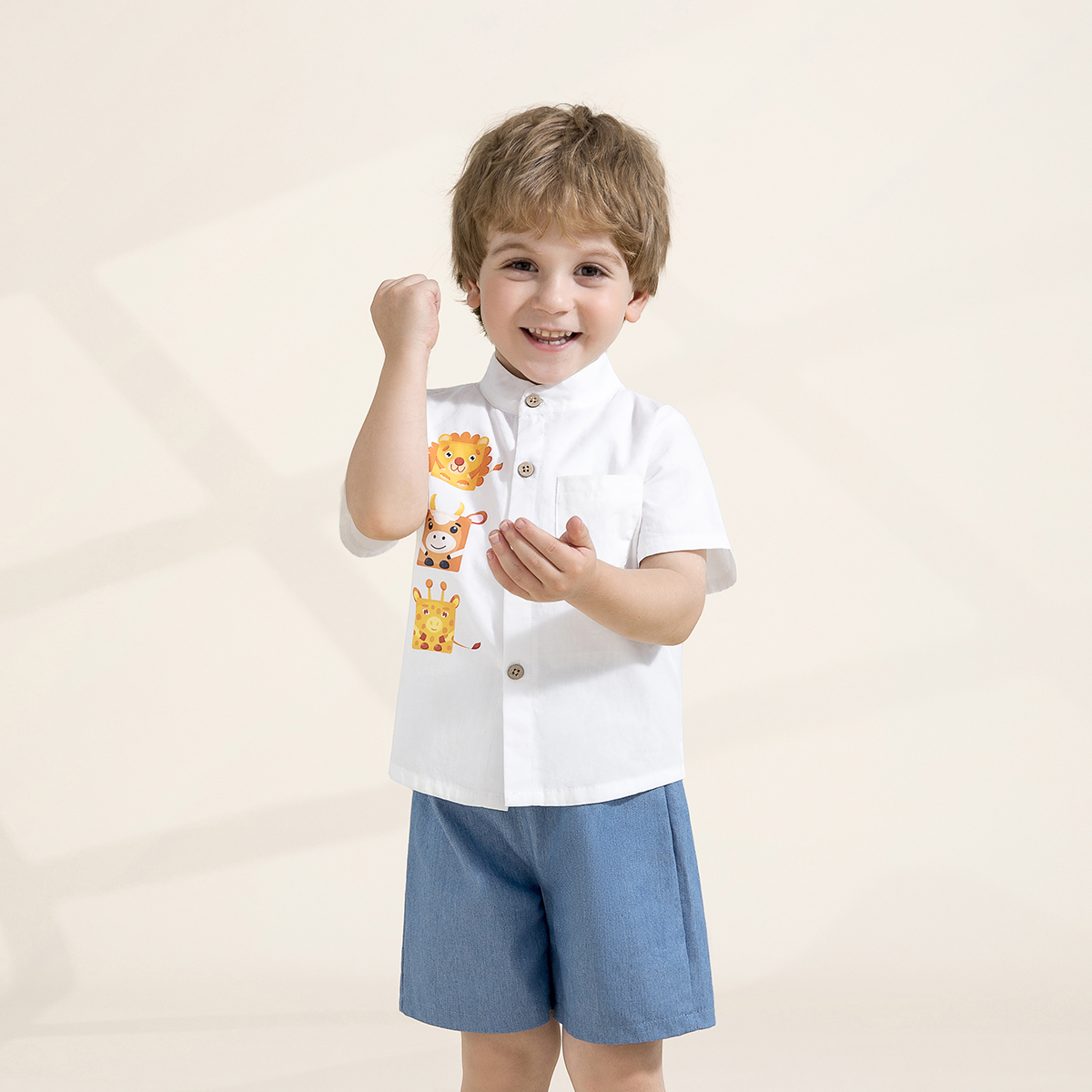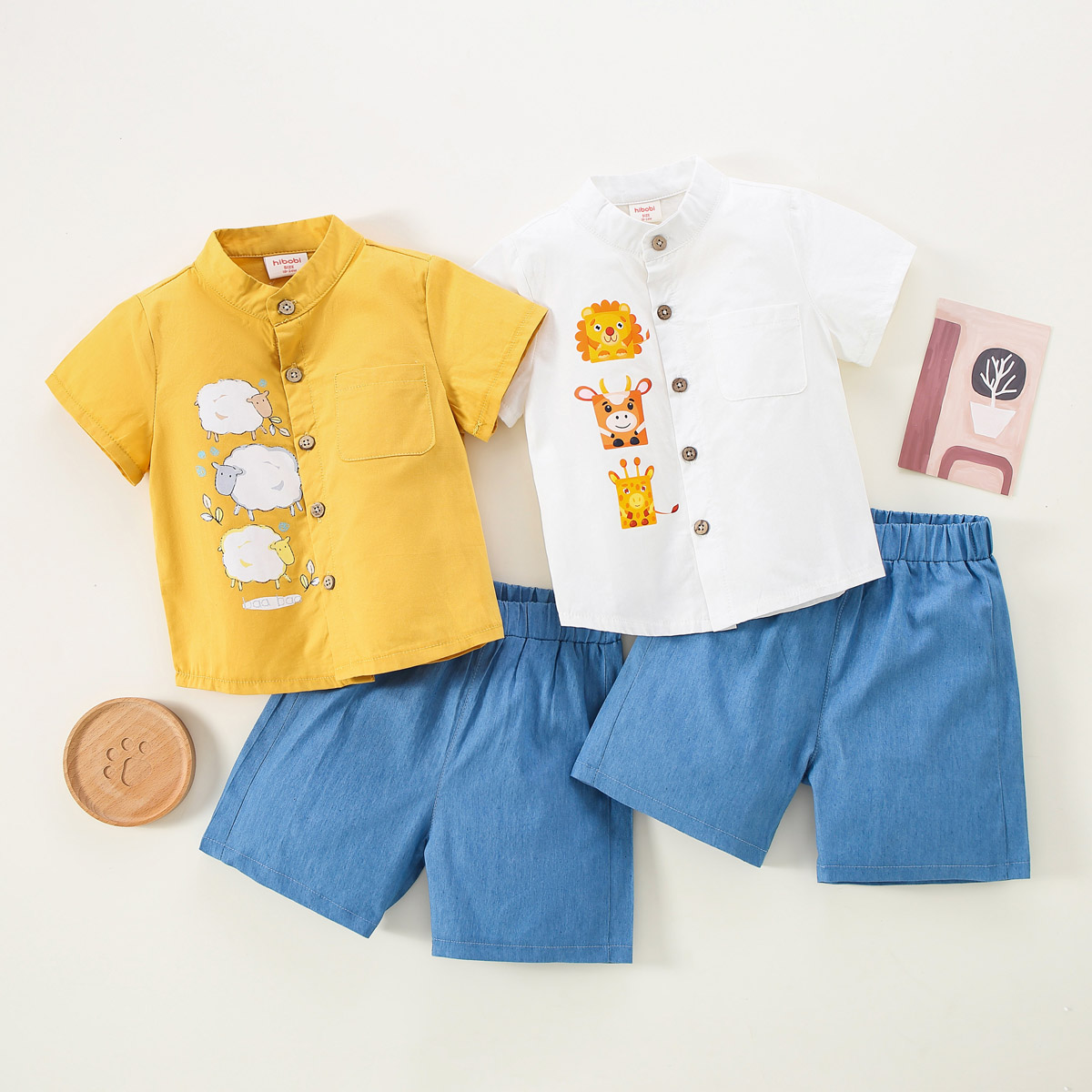 Toddler Boy Cute Animal Print Denim Shorts Suit Wholesale