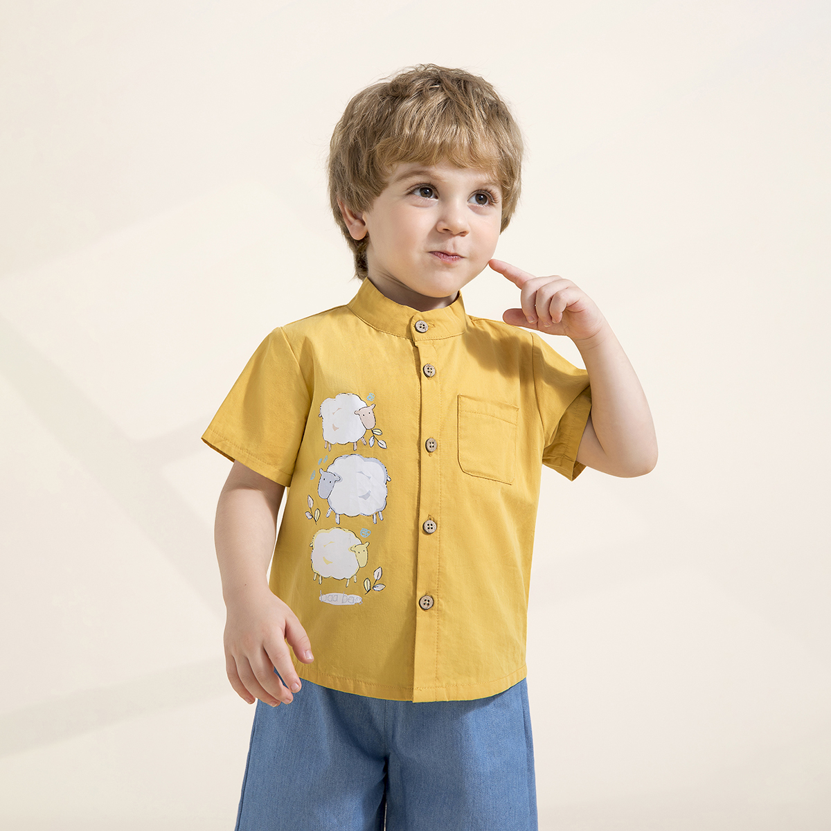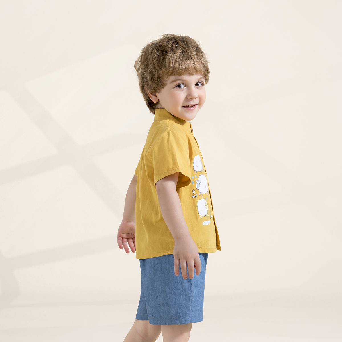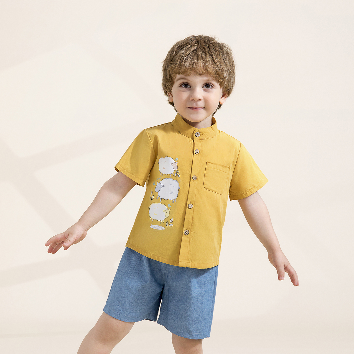 Toddler Boy Cute Animal Print Denim Shorts Suit Wholesale
