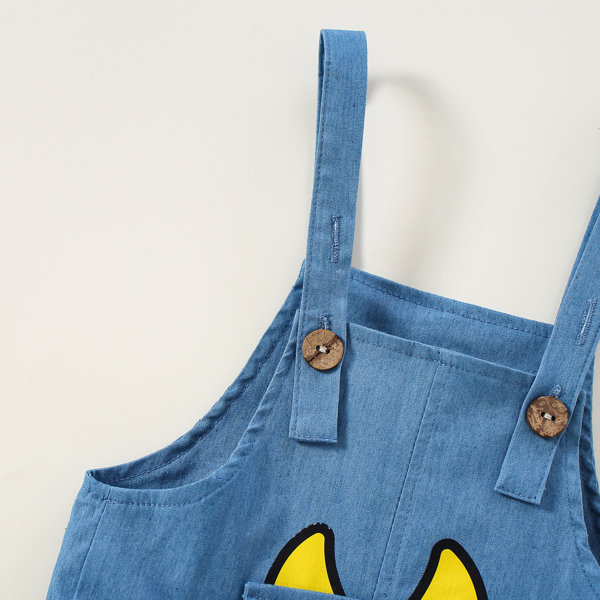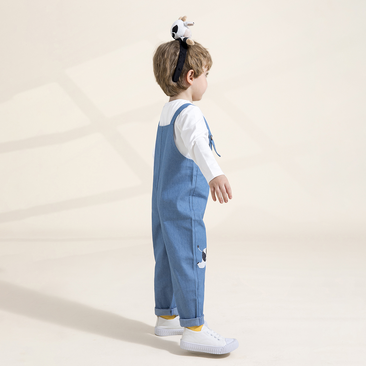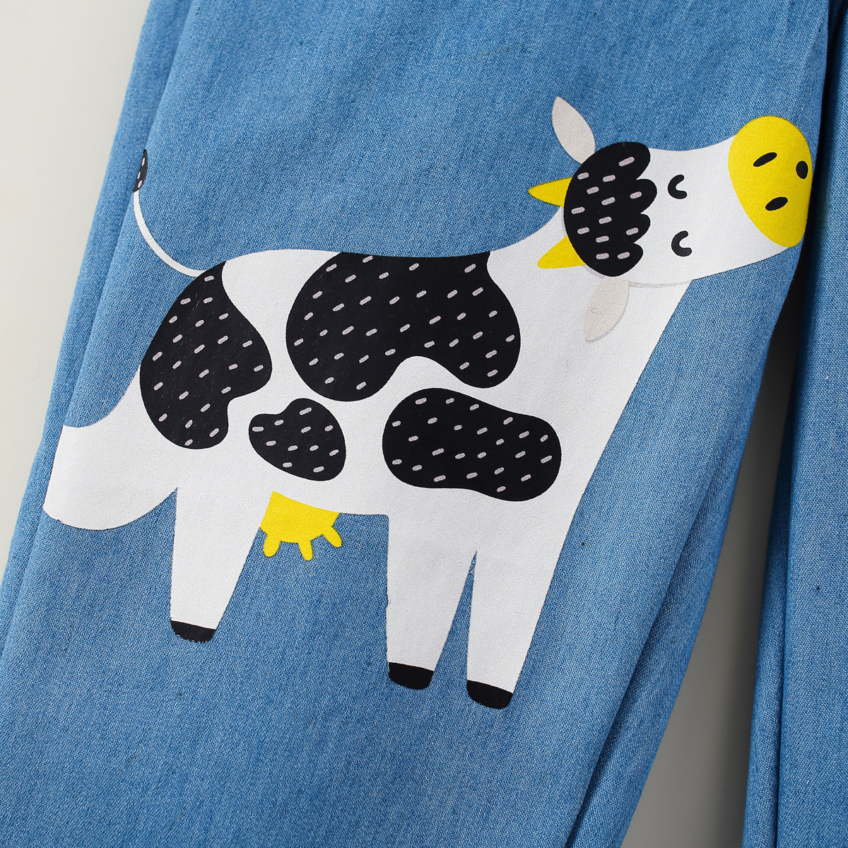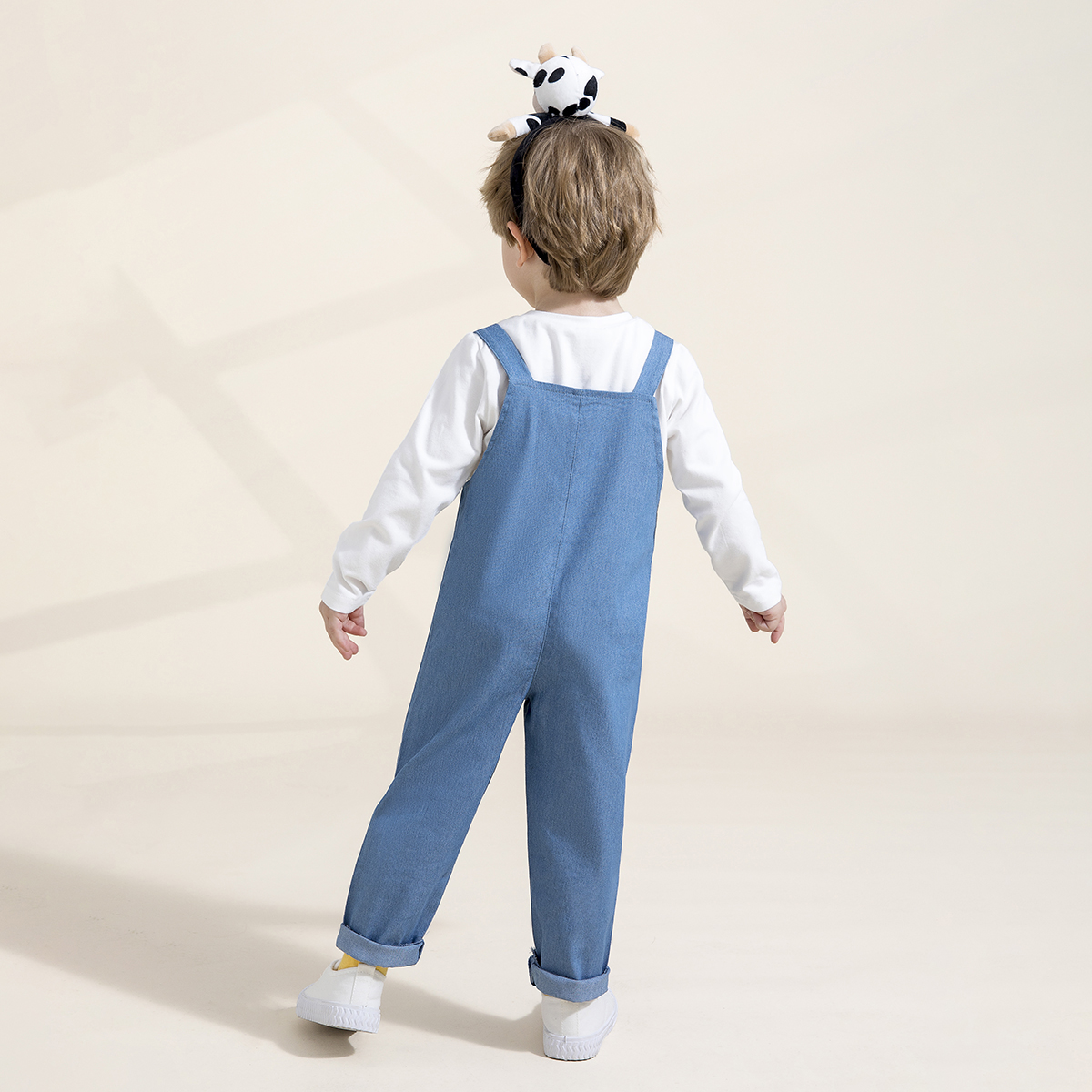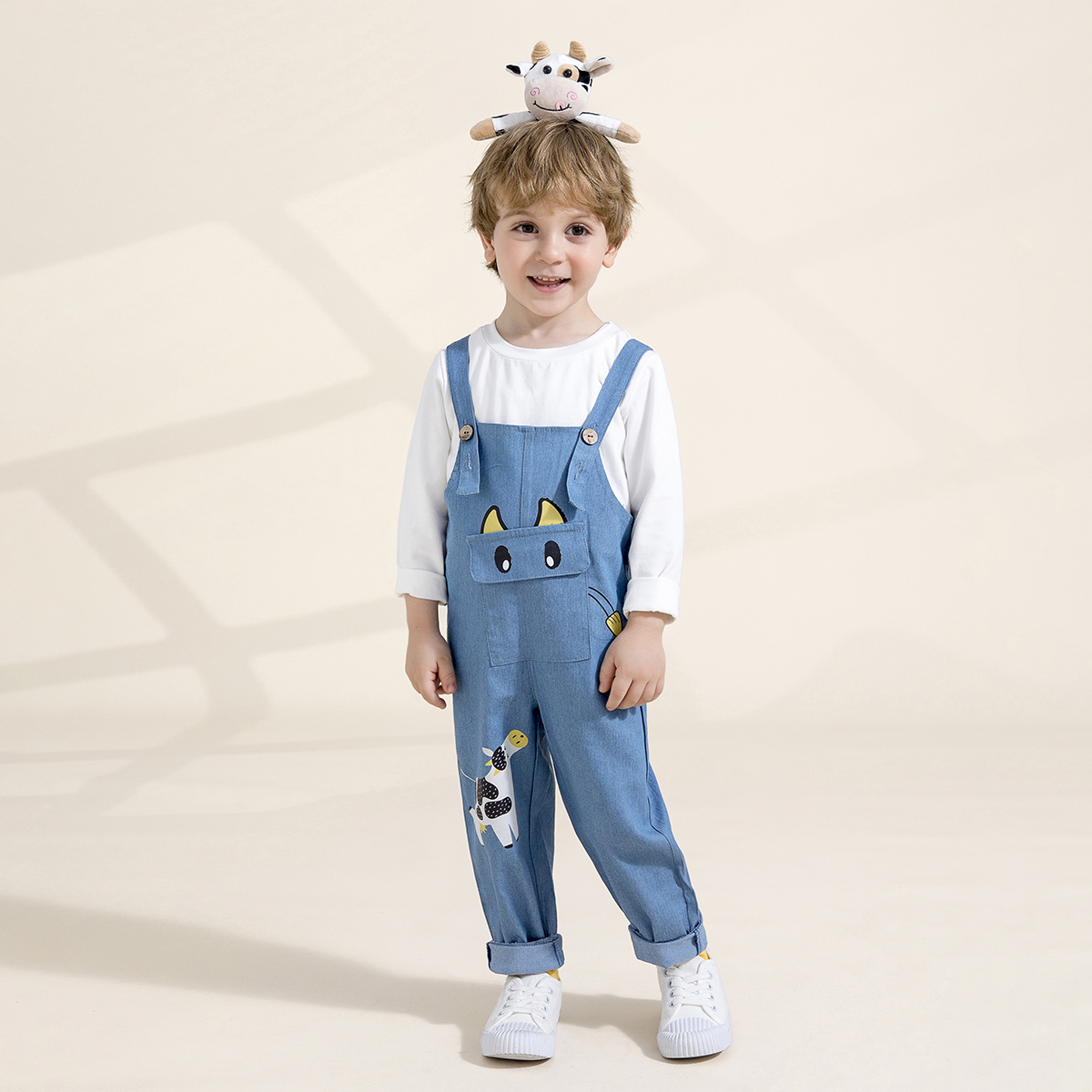 Toddler Boy Cute Dairy Cows Print Denim Strappy Trousers Suit Wholesale