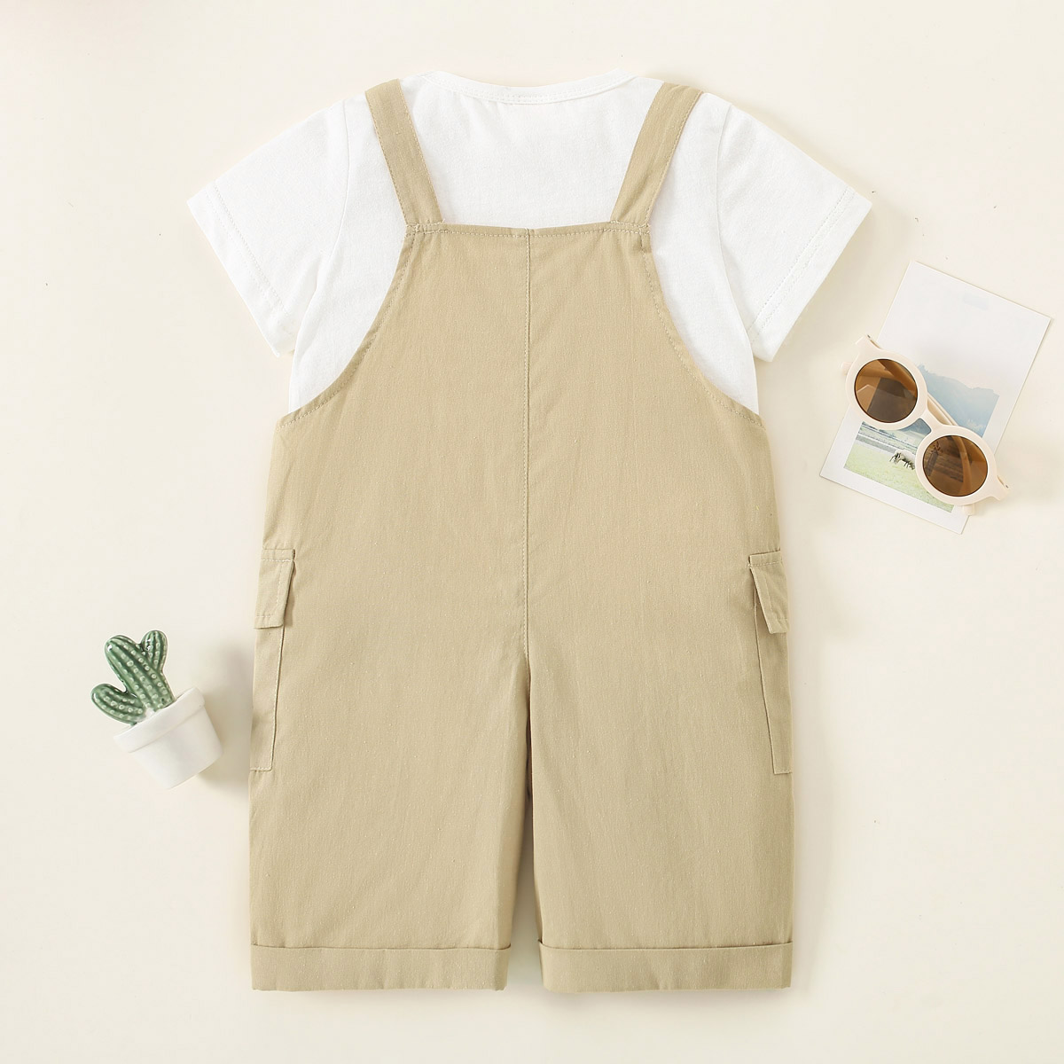 Toddler Boy Outdoor White T-shirt and Strappy Trousers Set Wholesale