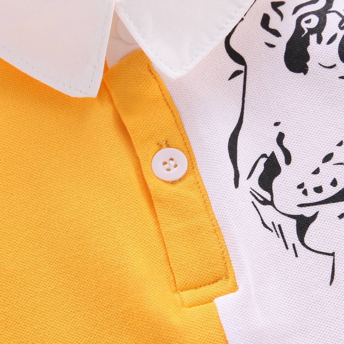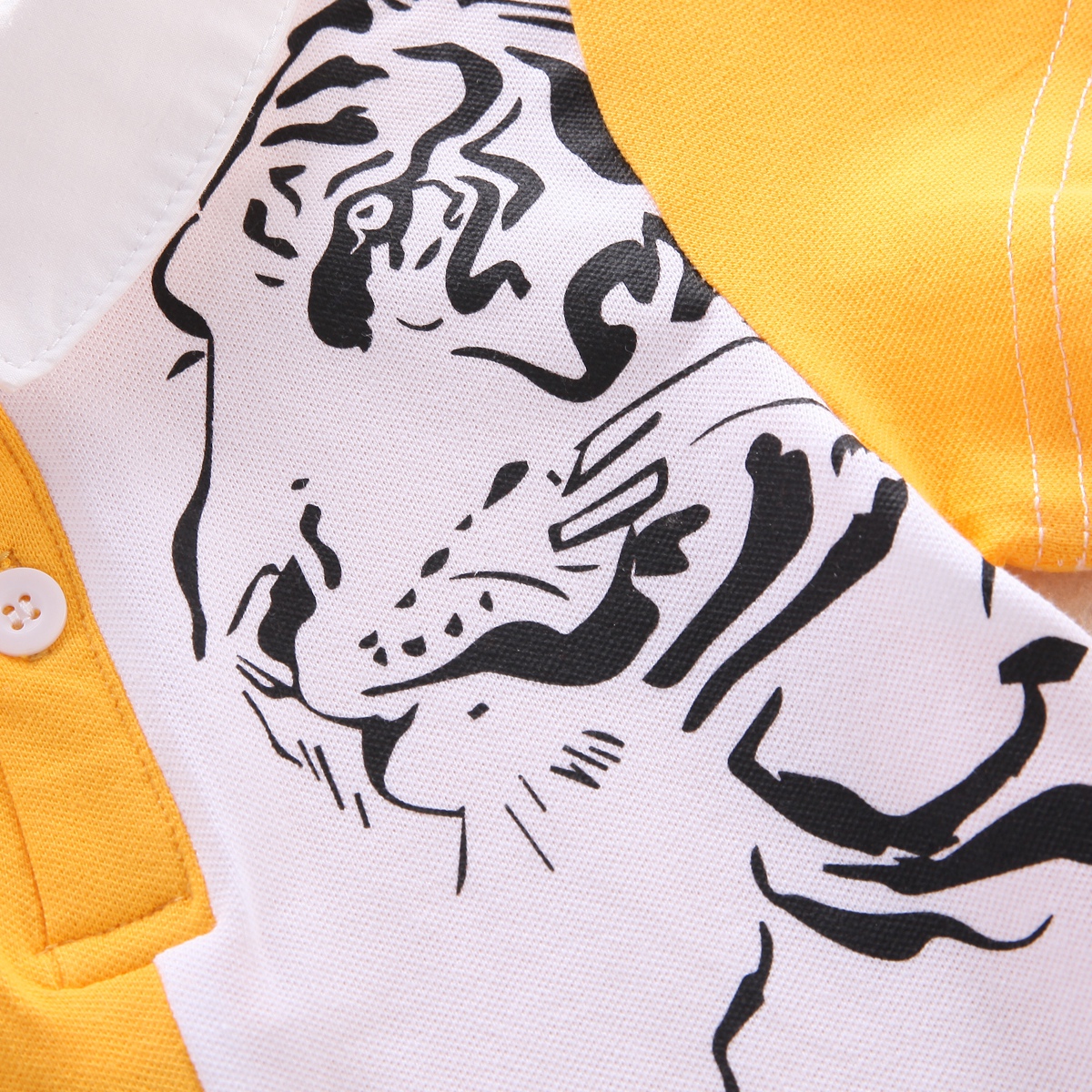 Toddler Boy Tiger Print Yellow & White Patchwork Polo T-shirt Wholesale