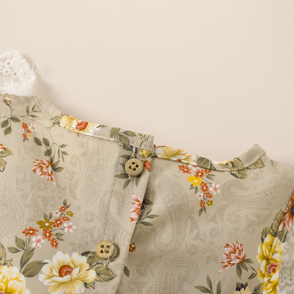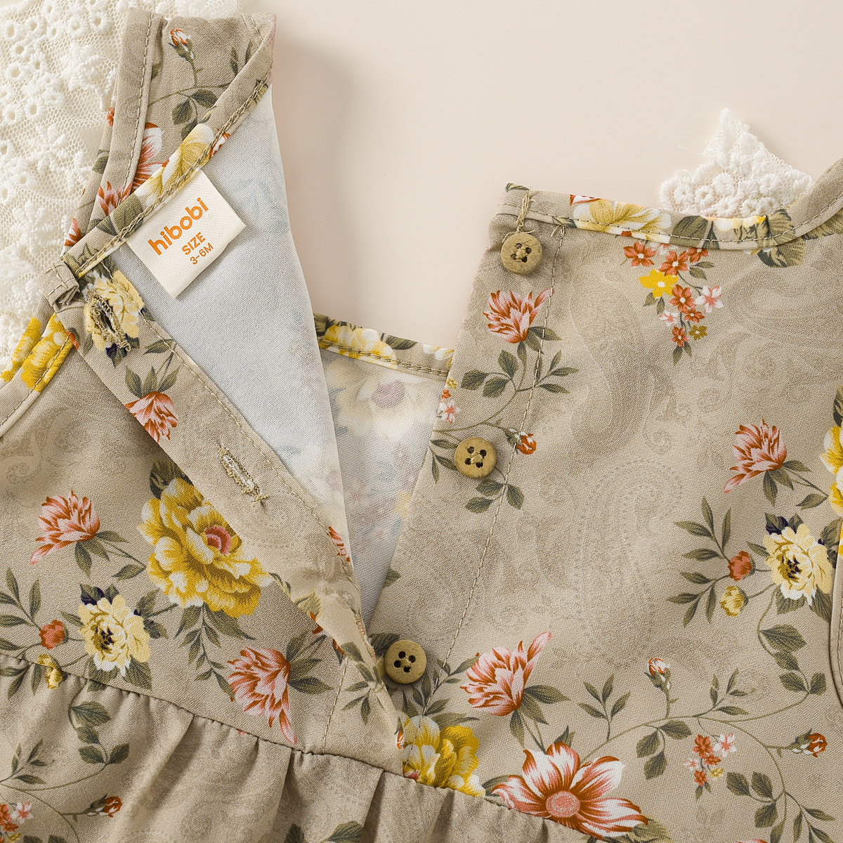 hibobi Girl Baby Floral Print White Lace Sleeveless Bodysuit & Headband Wholesale