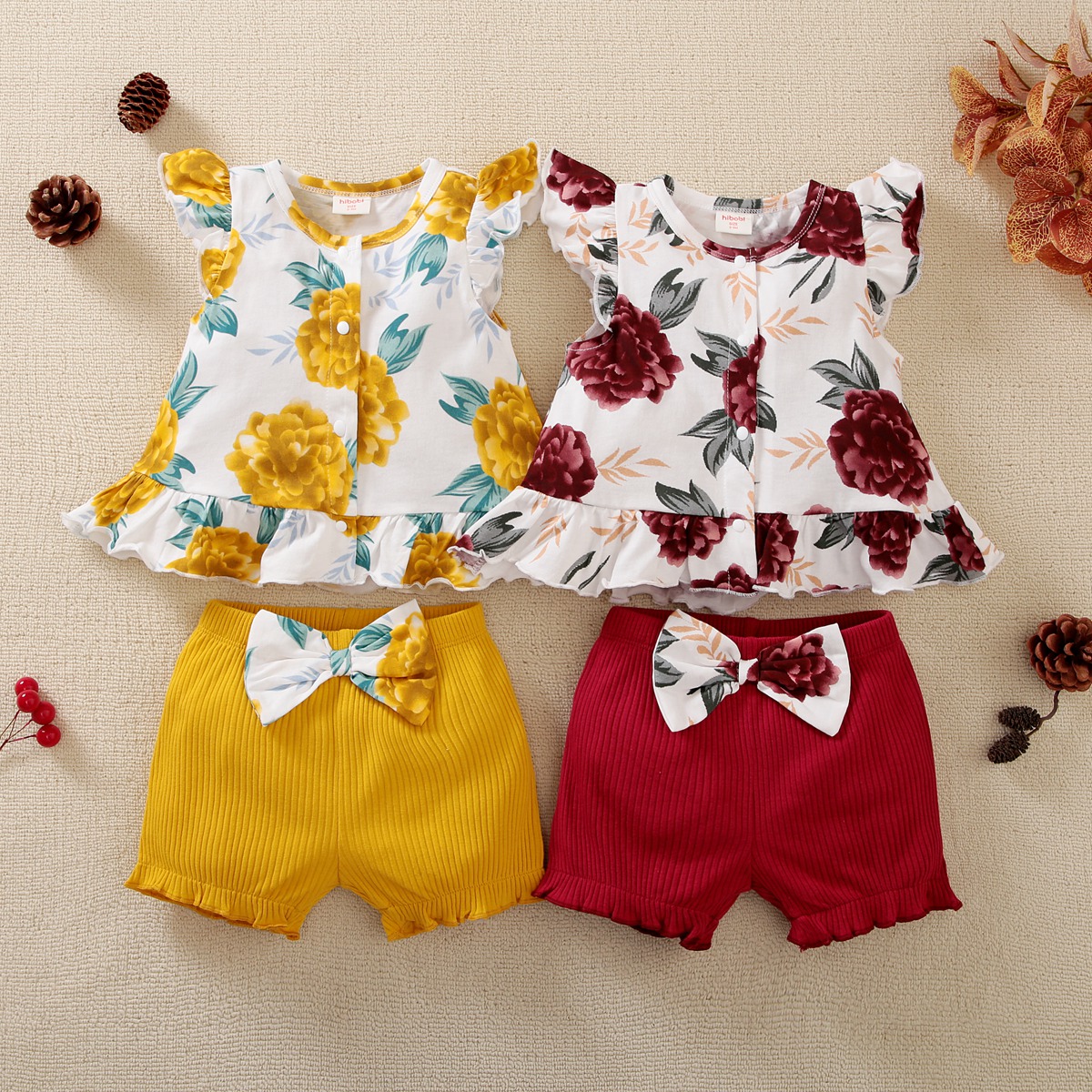 hibobi Girl Baby Floral Ruffle Bow Set Wholesale
