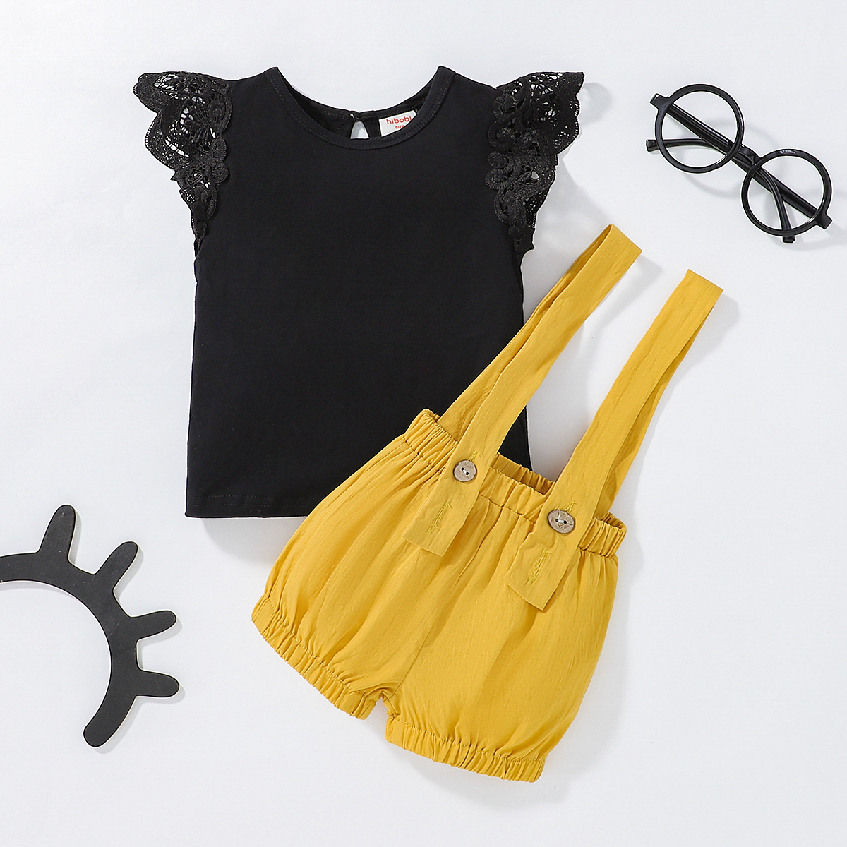 hibobi Girl Baby Lace Fly Sleeve Suspenders Trouser Suit Wholesale