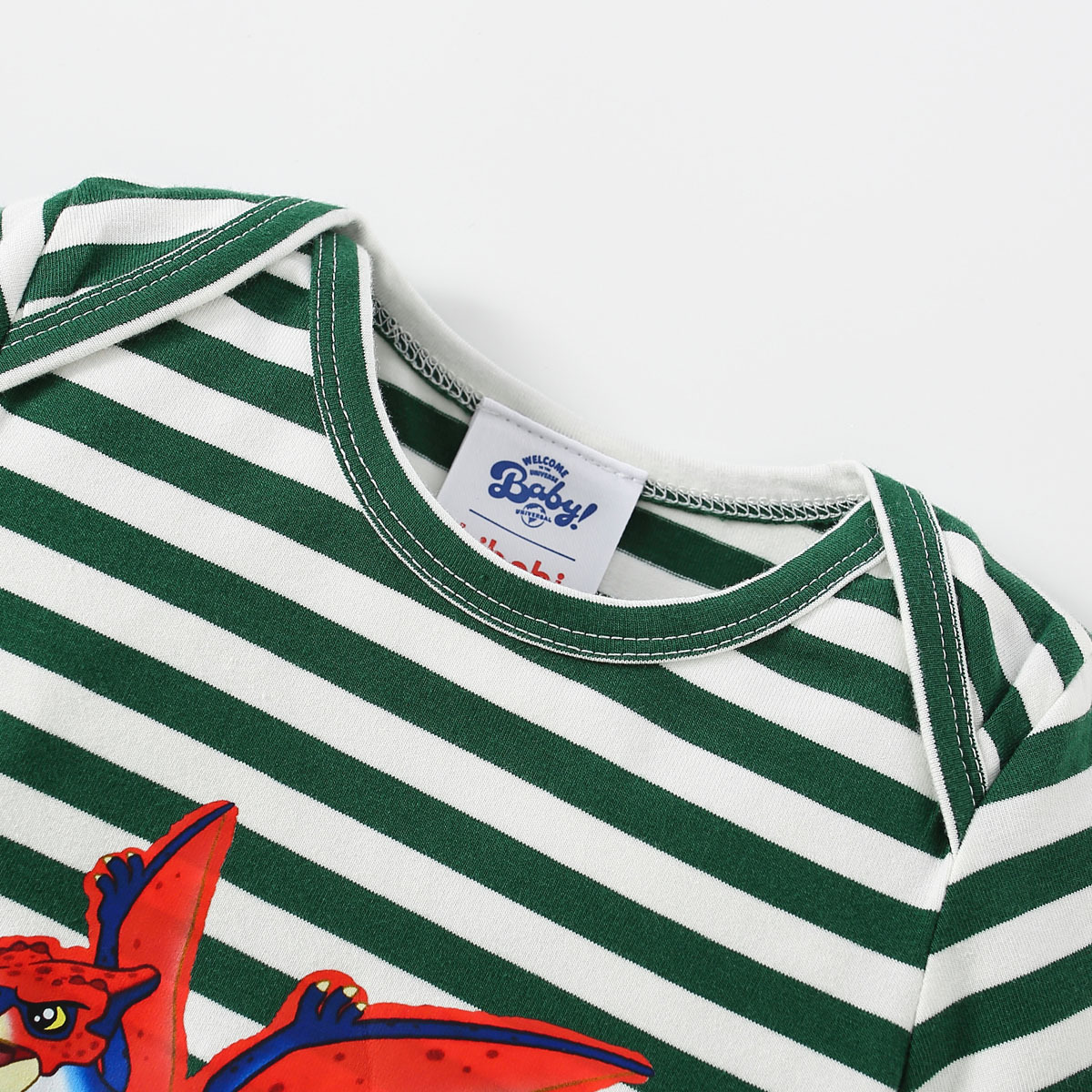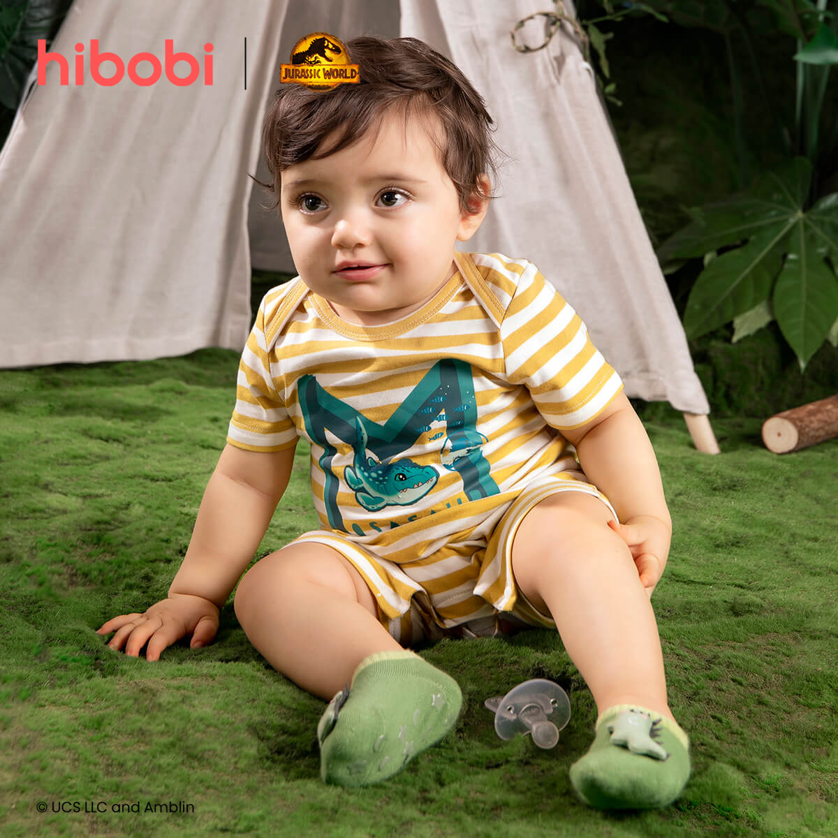 Jurassic World × hibobi baby Dinosaur Print Striped Bodysuit Wholesale