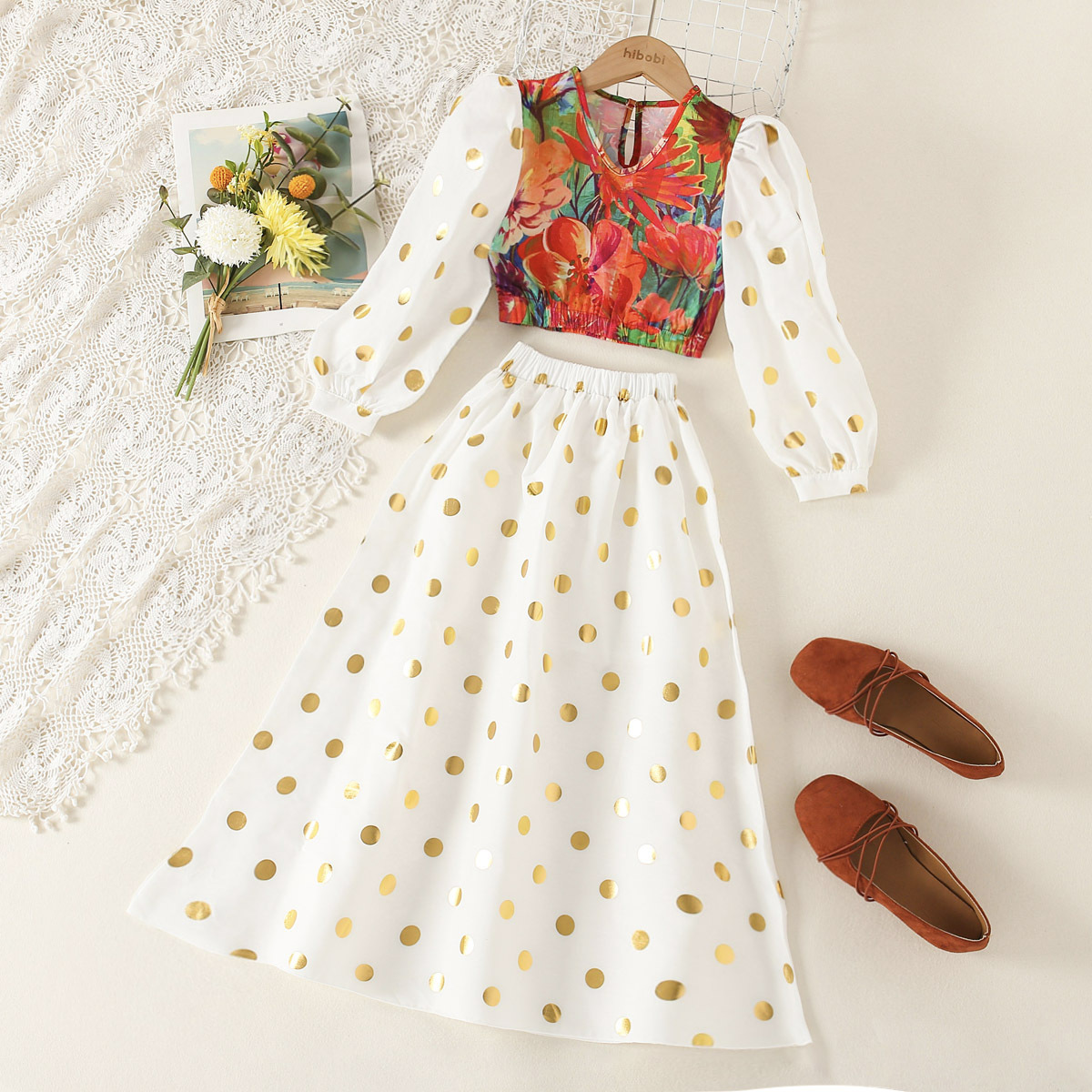Kid Girl Polka Dot Floral Print Set Wholesale