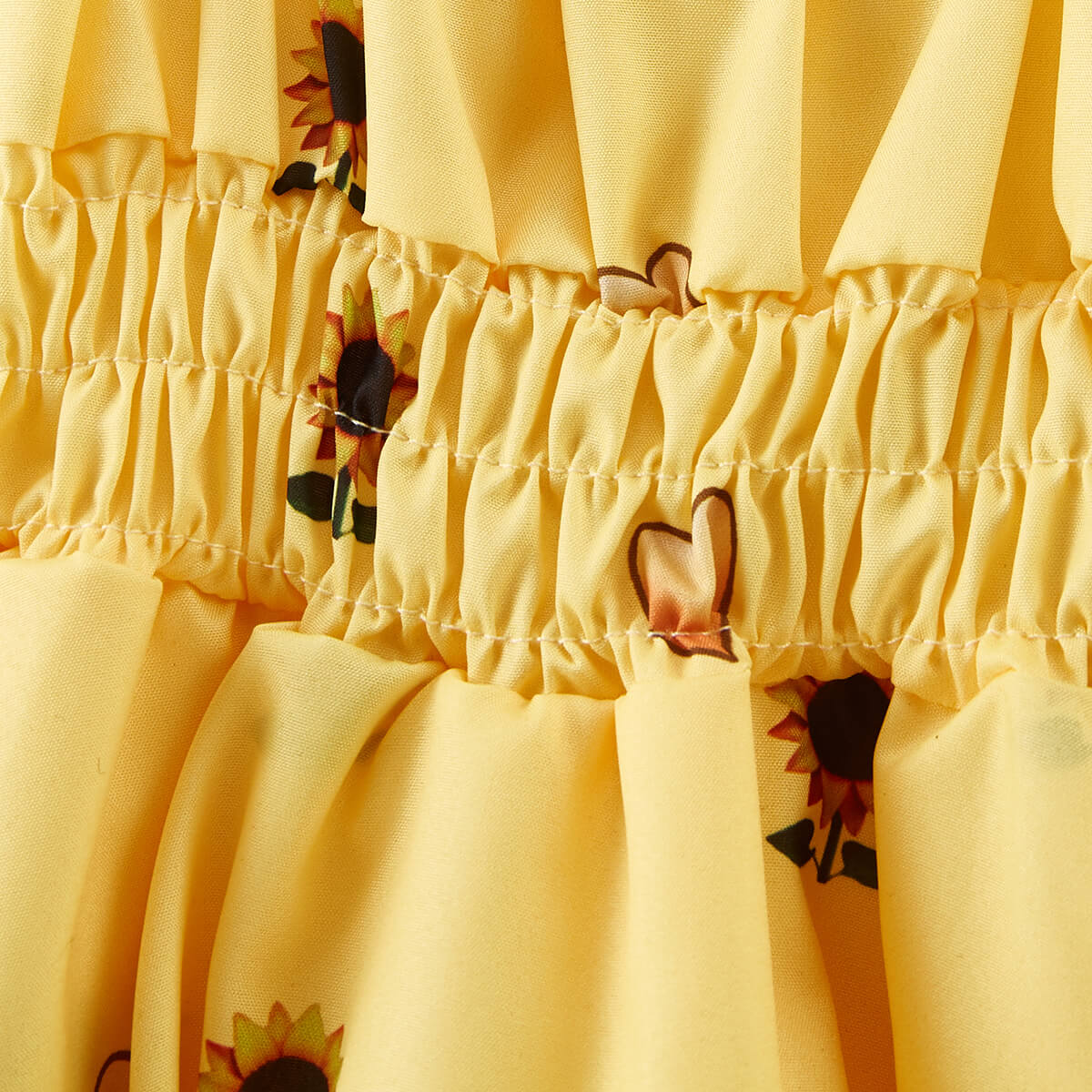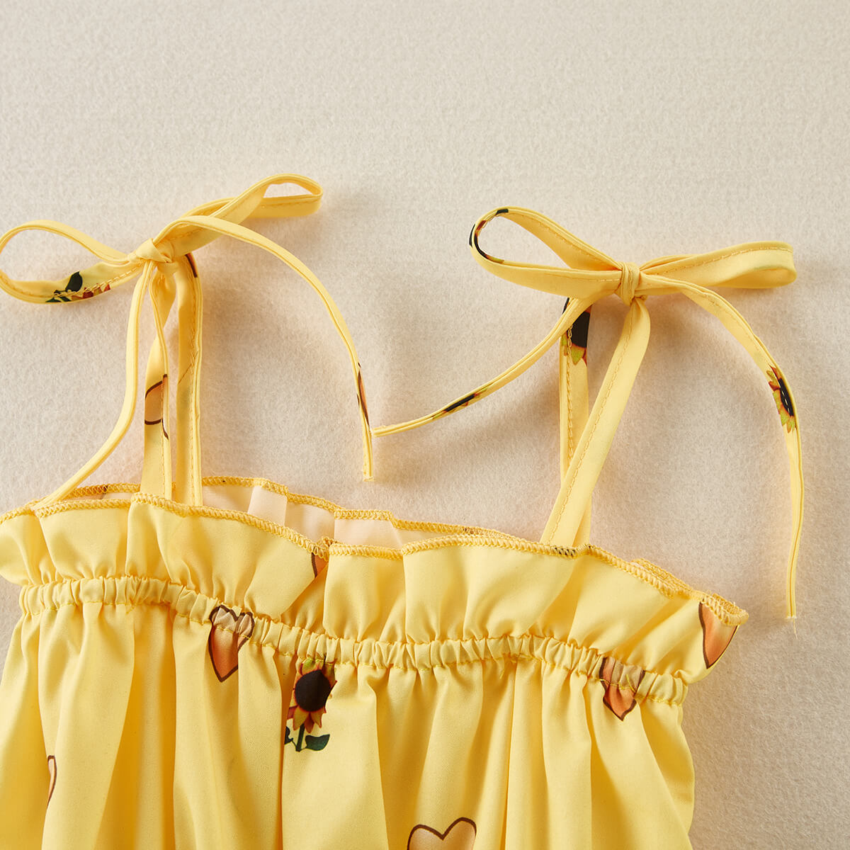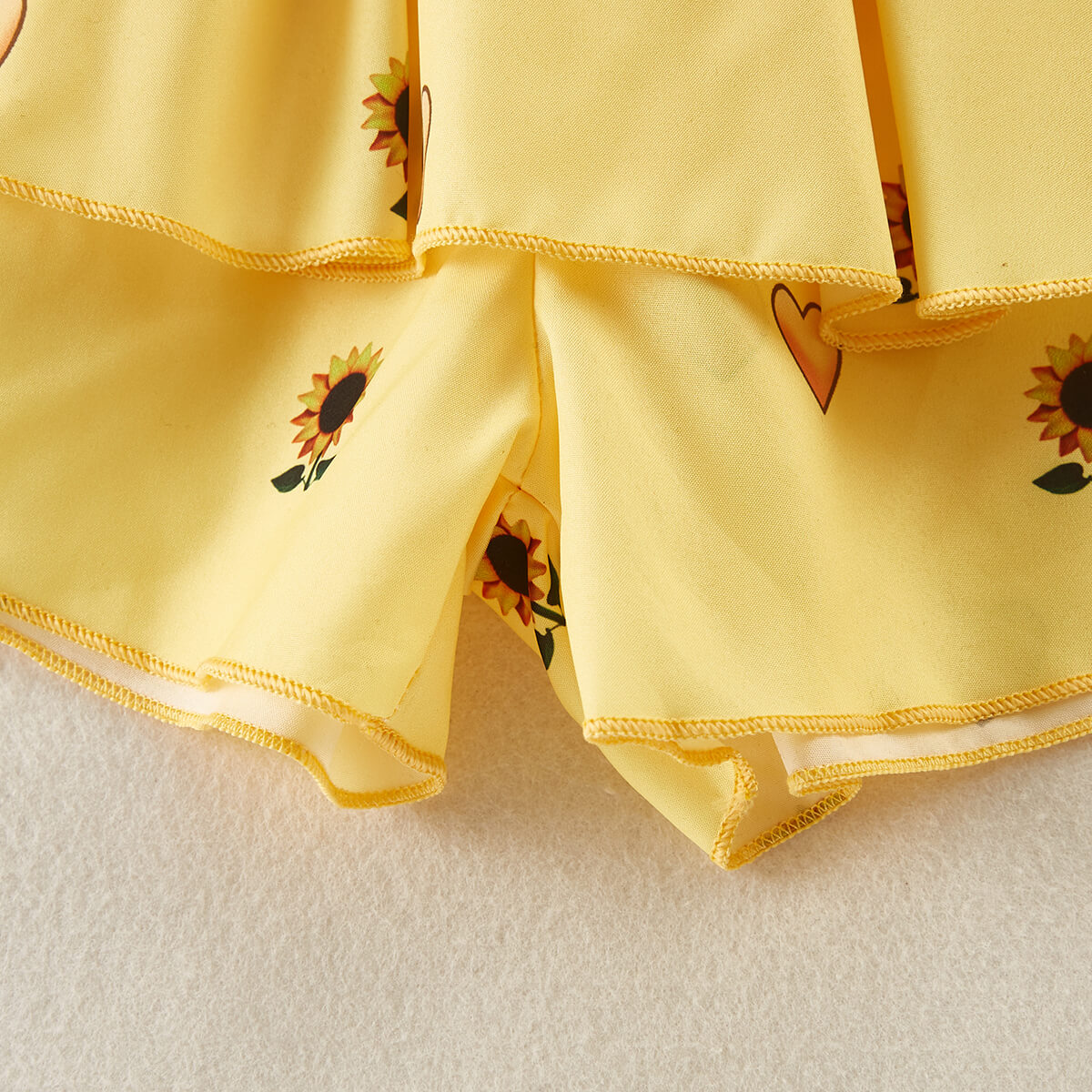 Kids Girls Heart And Sunflower Print Shirred Jumpsuits Wholesale