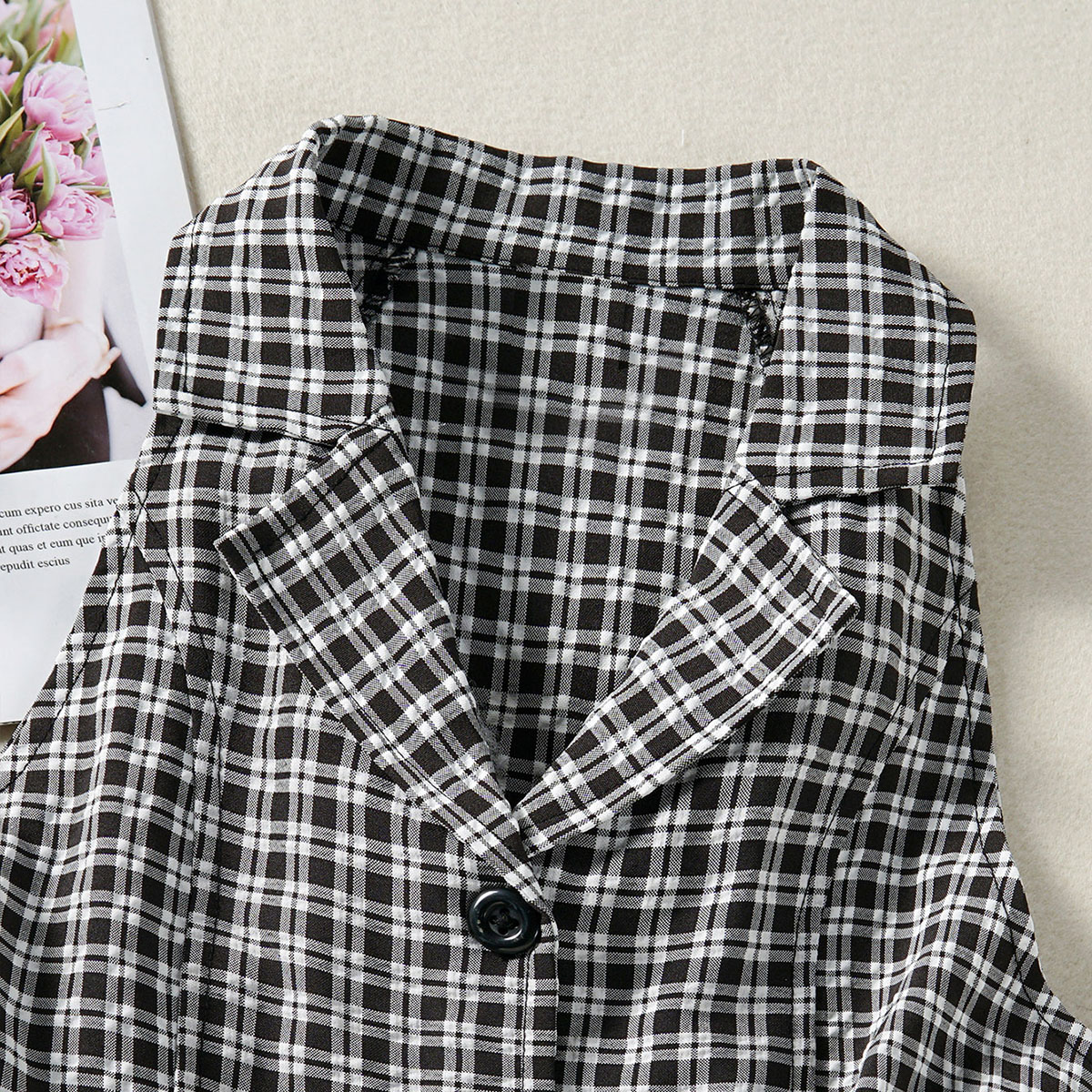 Kids Girls Personality Retro Black and White Plaid Sleeveless Lapel A-line skirt Wholesale