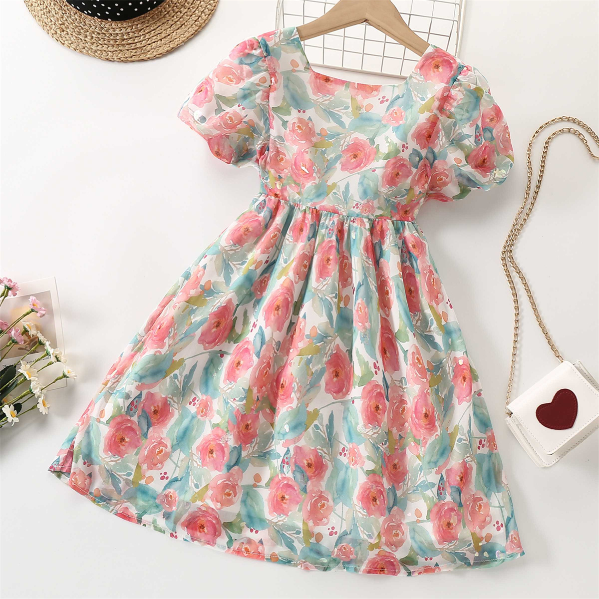 Kids Girls Print Summer Puff Sleeve Dress Wholesale