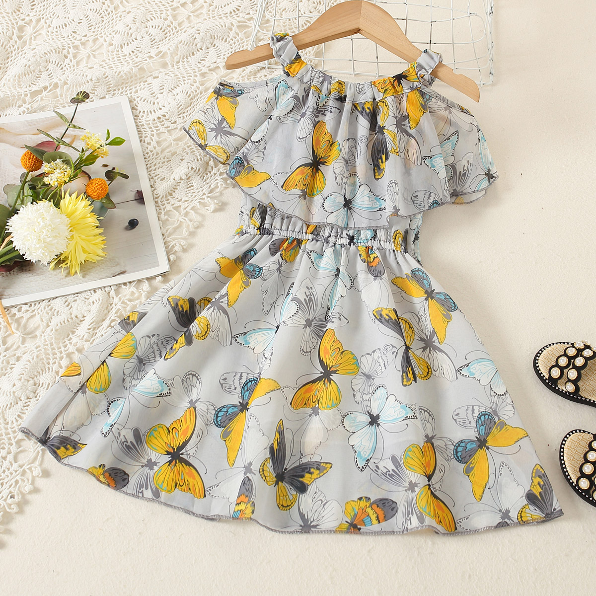 Kids Girls Summer Vacation Beach Daily Butterfly Gallery Dress Wholesale