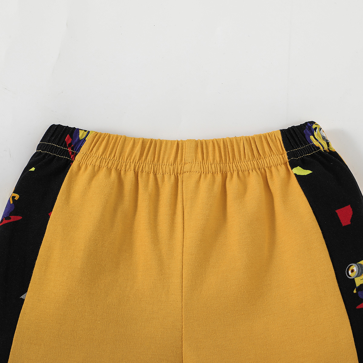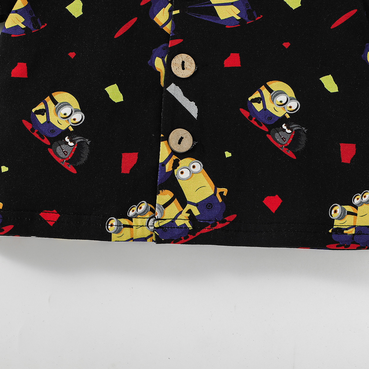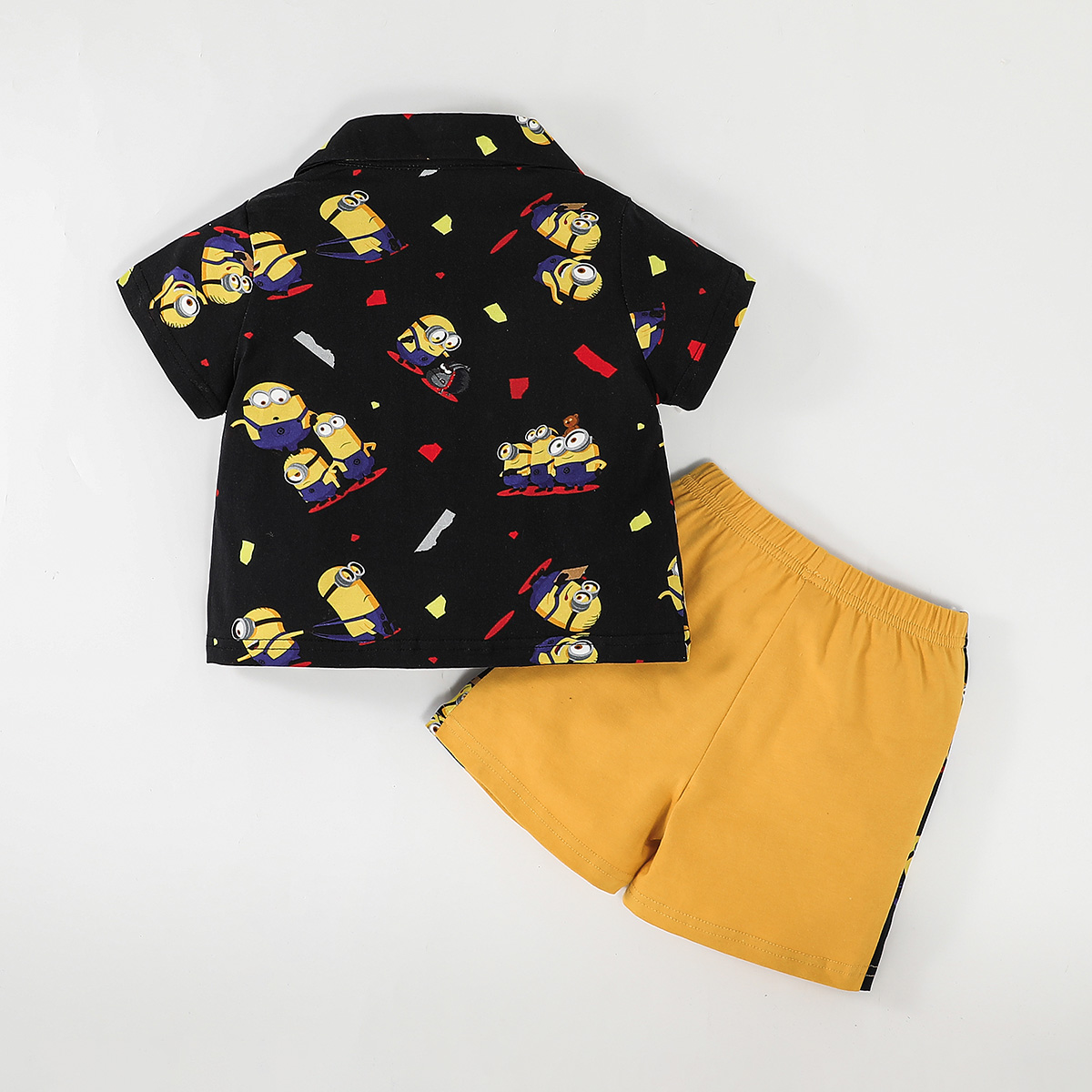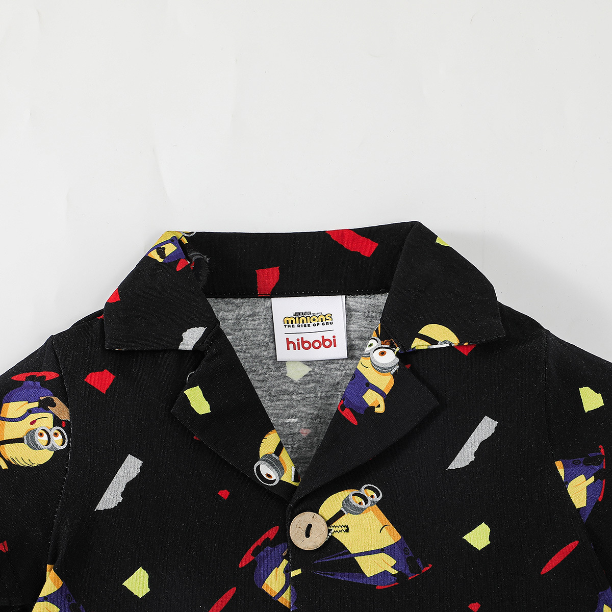 Minions × toddler boy Printed Black Shirt & Patchwork Trousers Set Wholesale