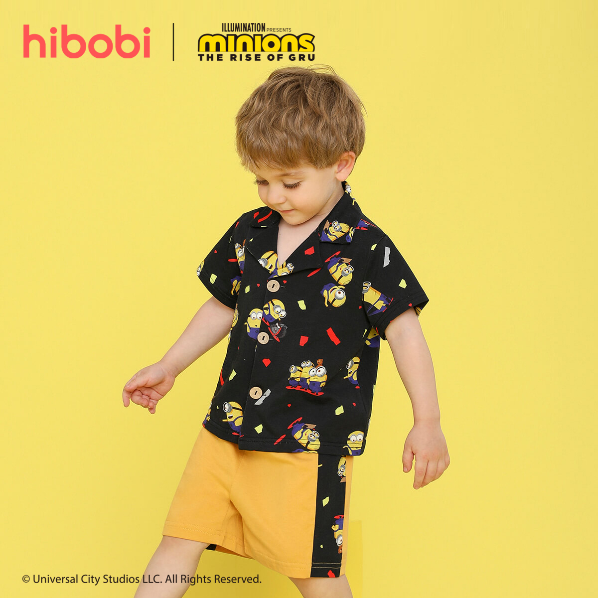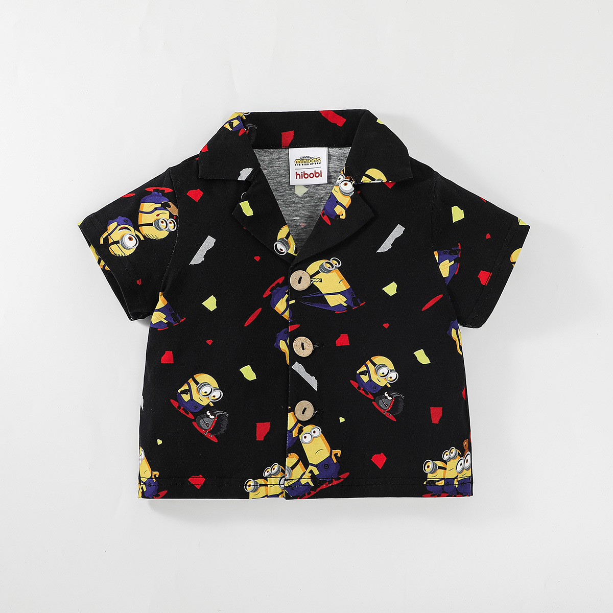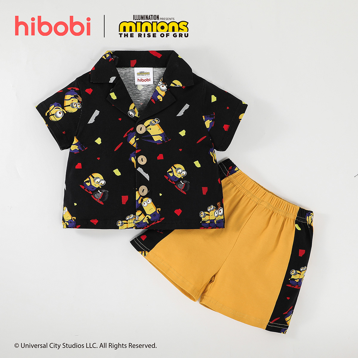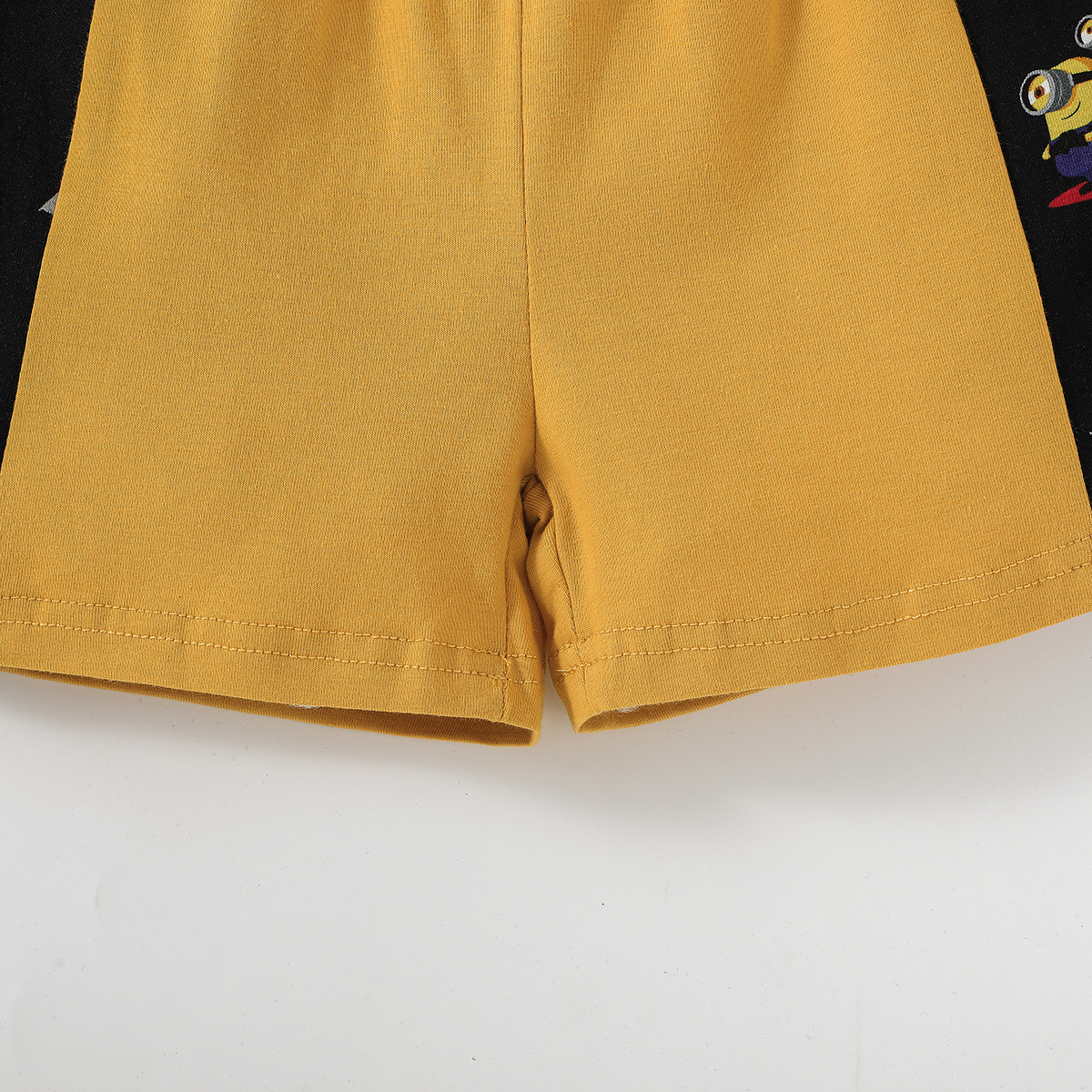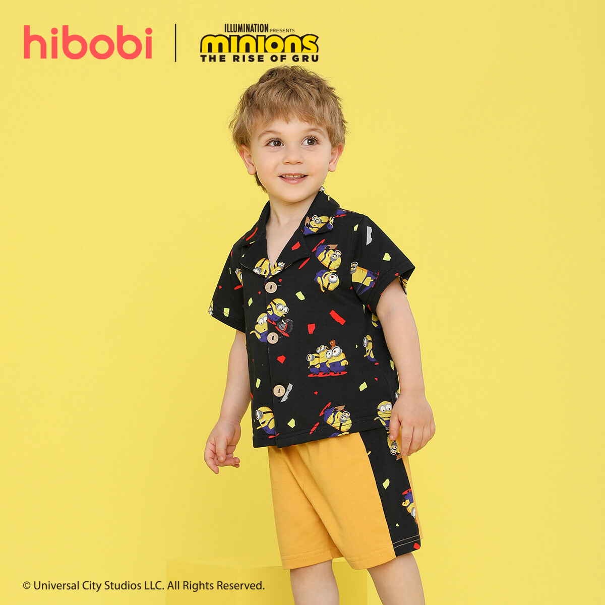 Minions × toddler boy Printed Black Shirt & Patchwork Trousers Set Wholesale