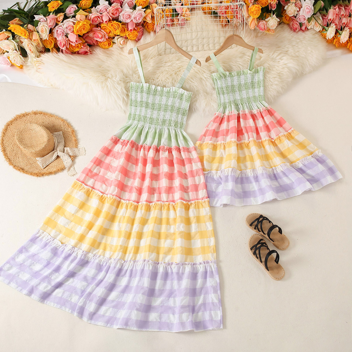 Sweet Plaid Print Sleeveless Long Dress for Mom and Me Wholesale