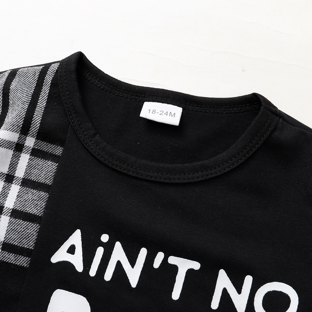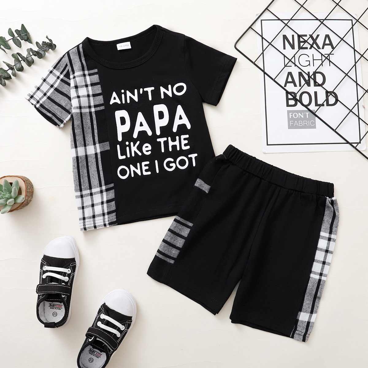 Toddler Boy Letter Plaid Patchwork Top & Shorts Wholesale