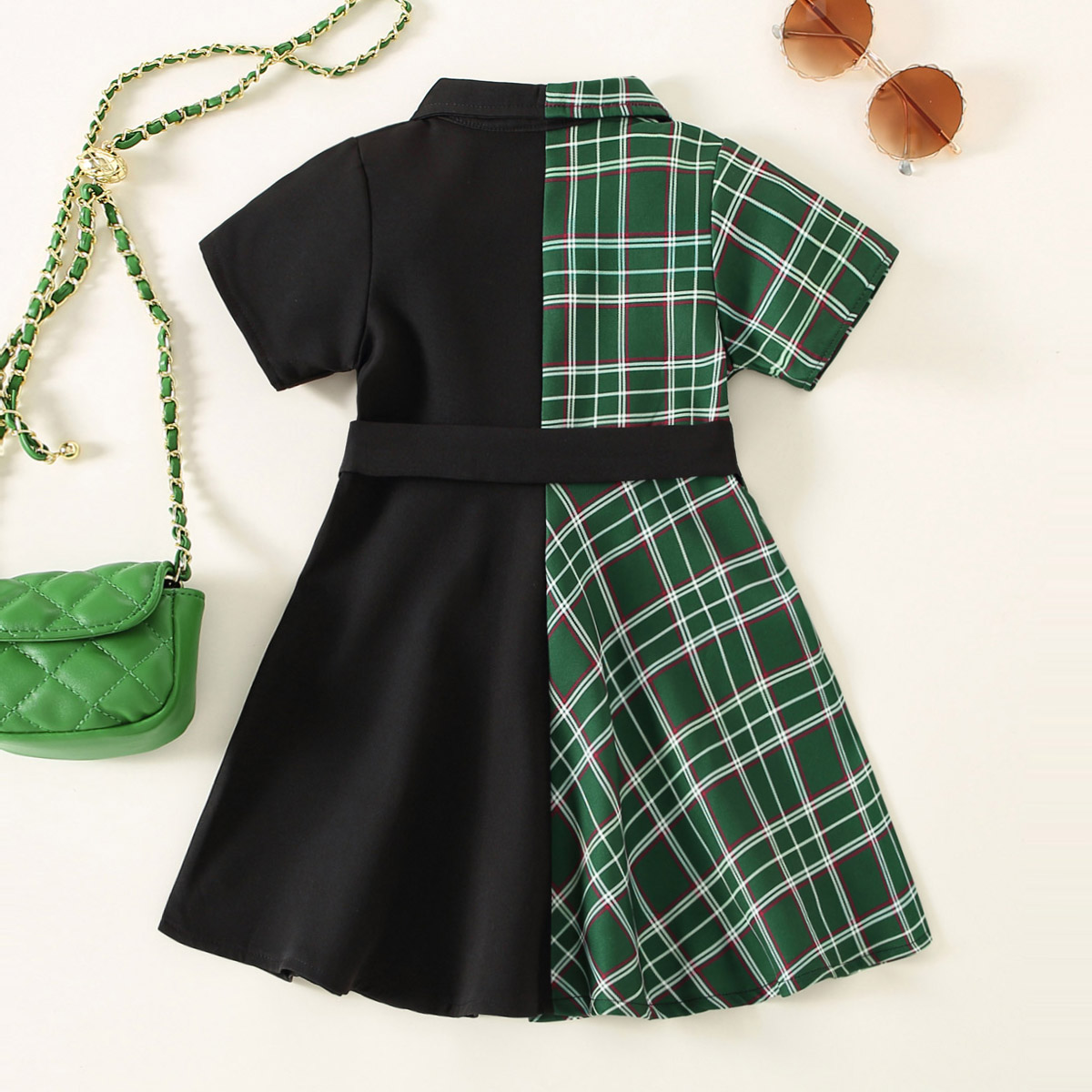 Toddler Girl Casual Plain Asymmetric Plaid Dress Wholesale