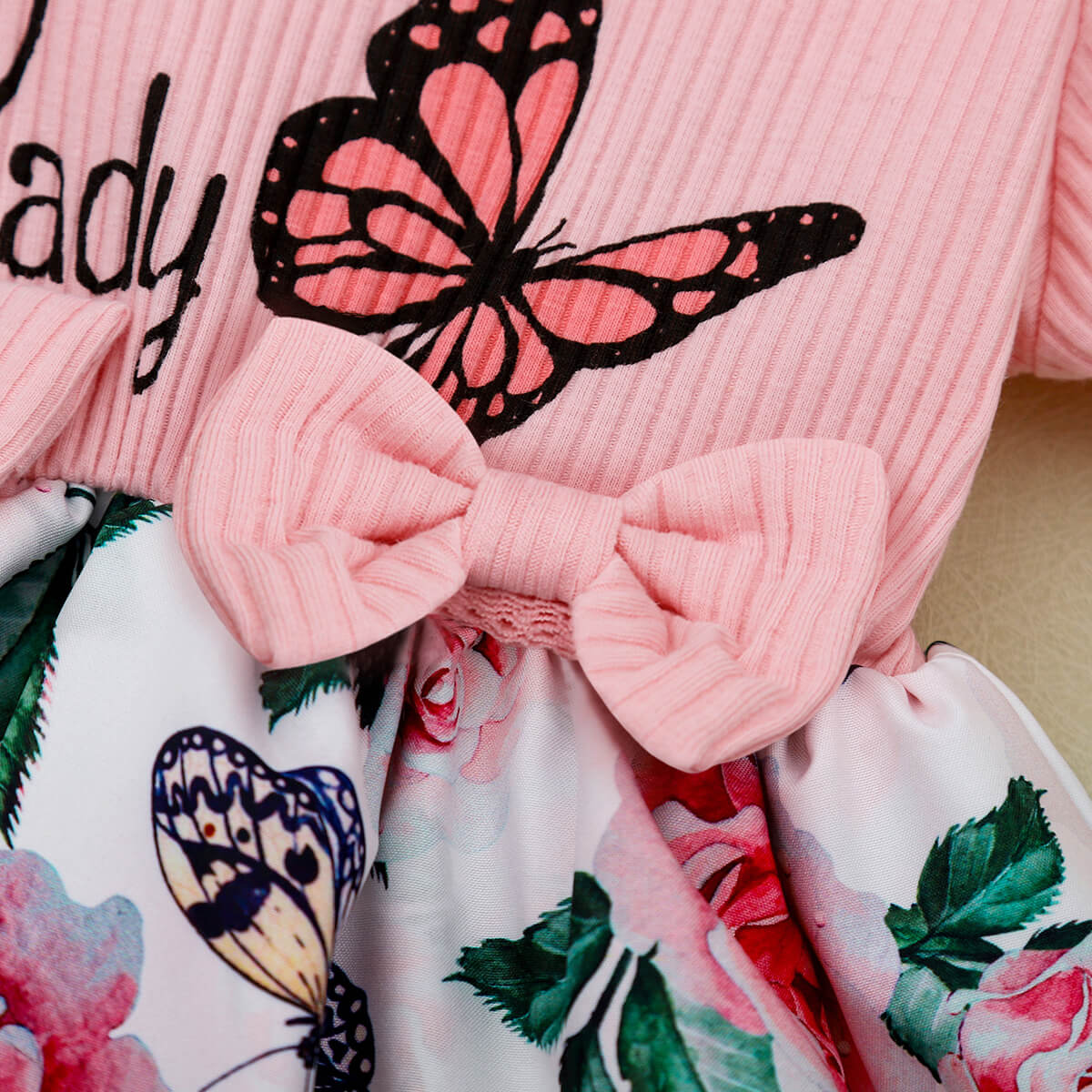 Toddler Girl Sweet Floral Bow Knot Decor Dress Wholesale
