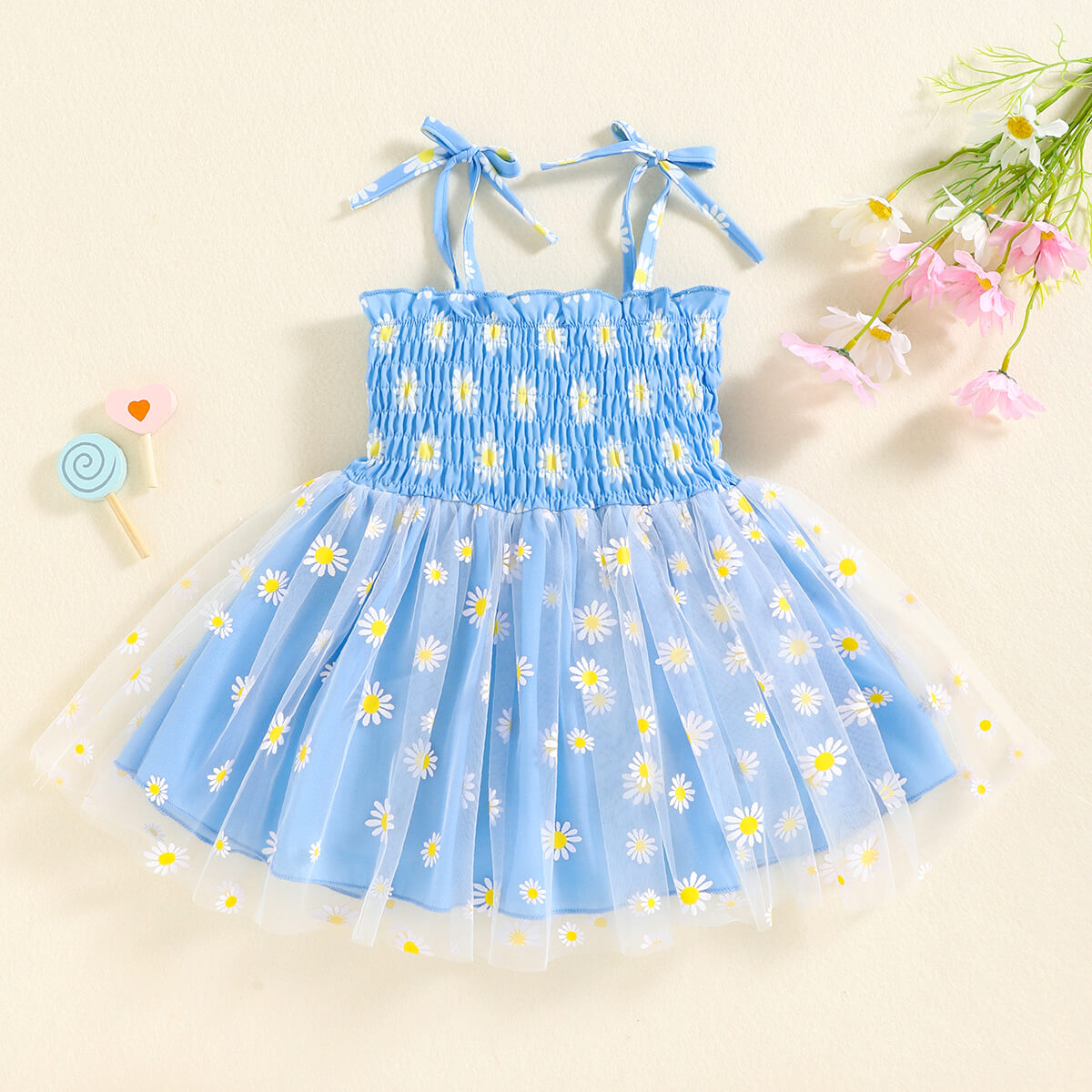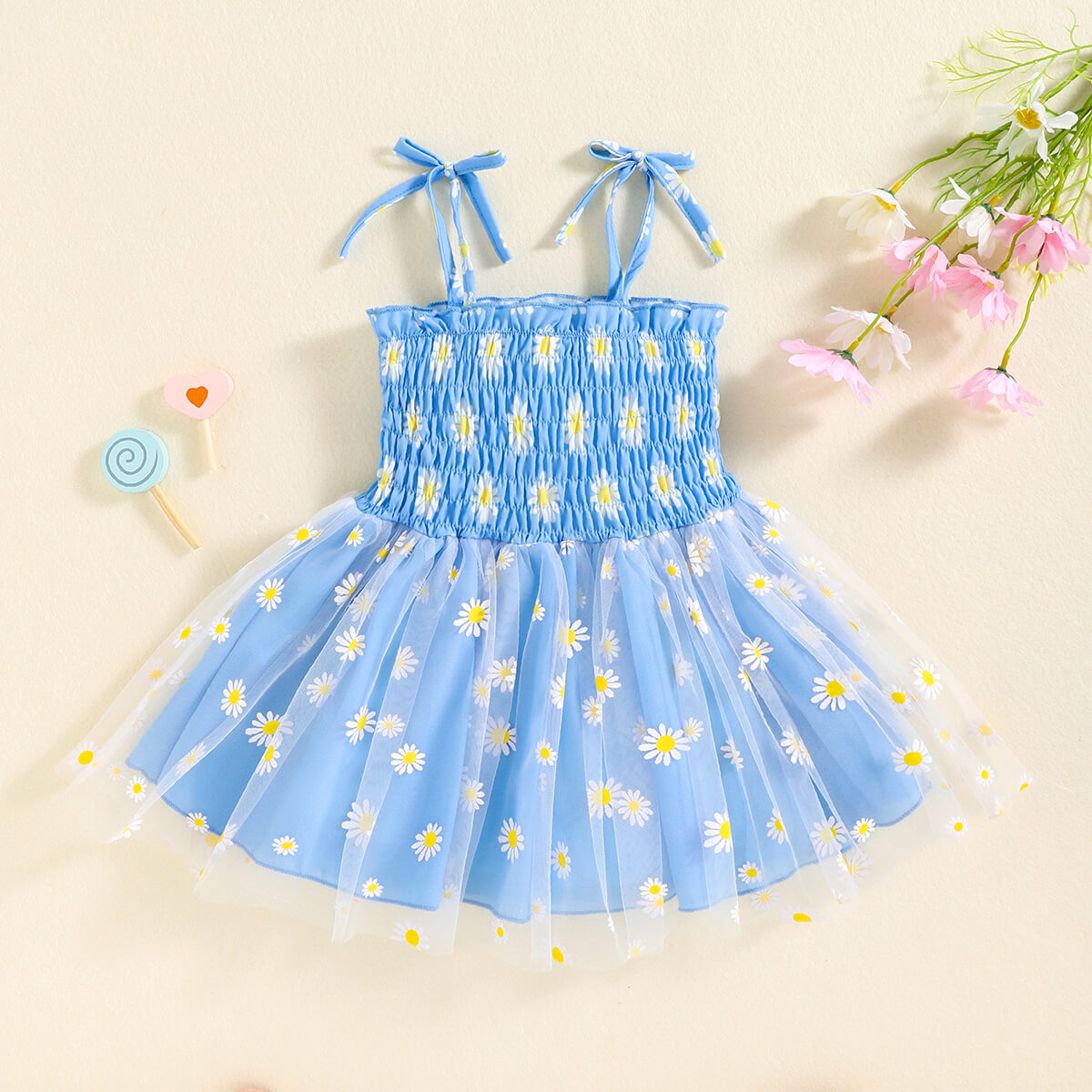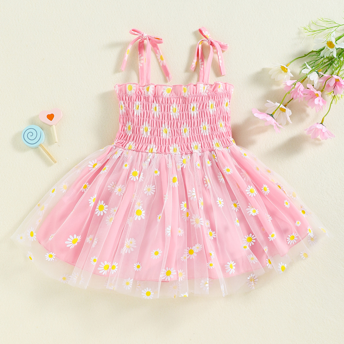 Toddler Girls Floral Print Mesh Straps Tutu Skirt Dress Wholesale