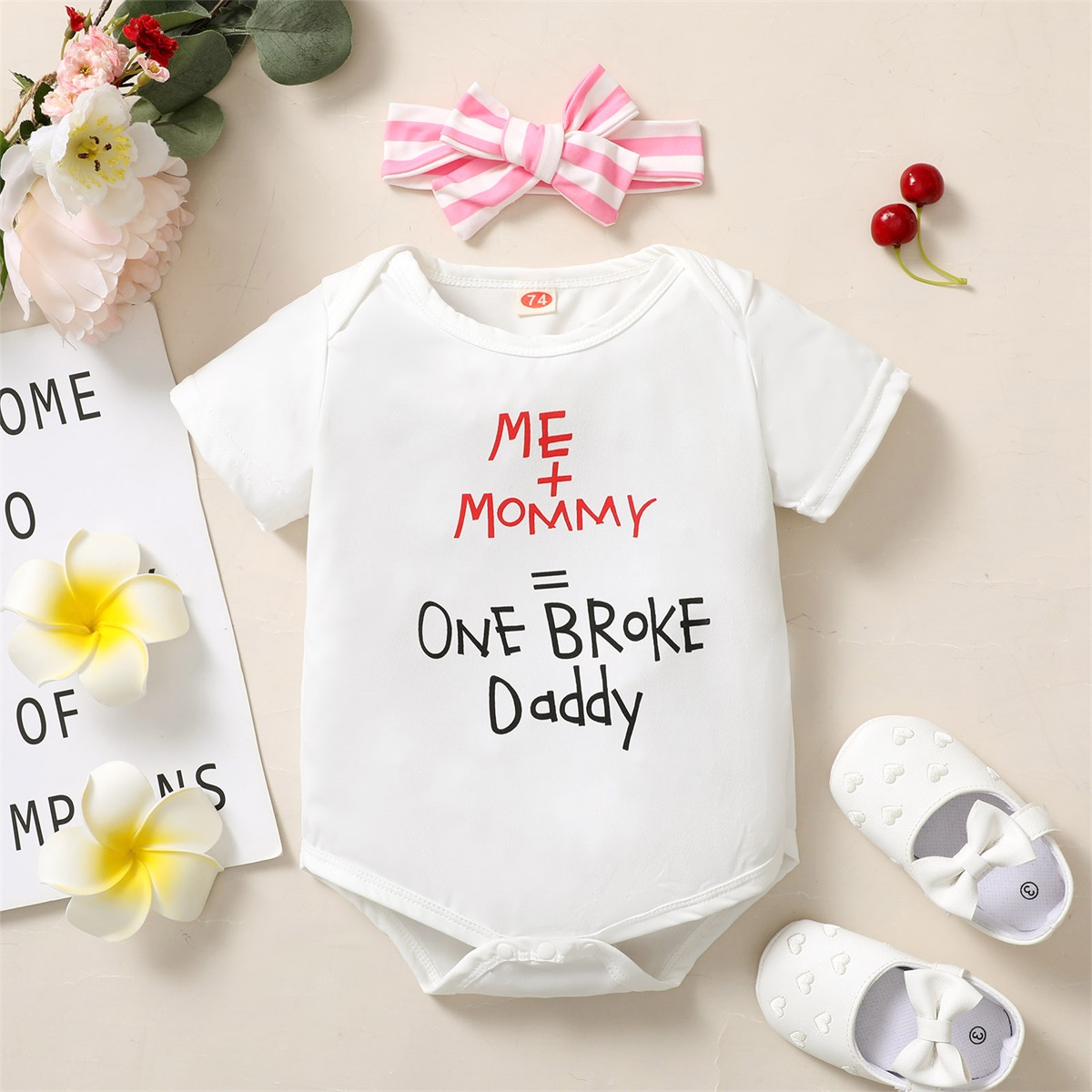 Baby Girl Letter Pattern Bodysuit & Stripe Headband Wholesale